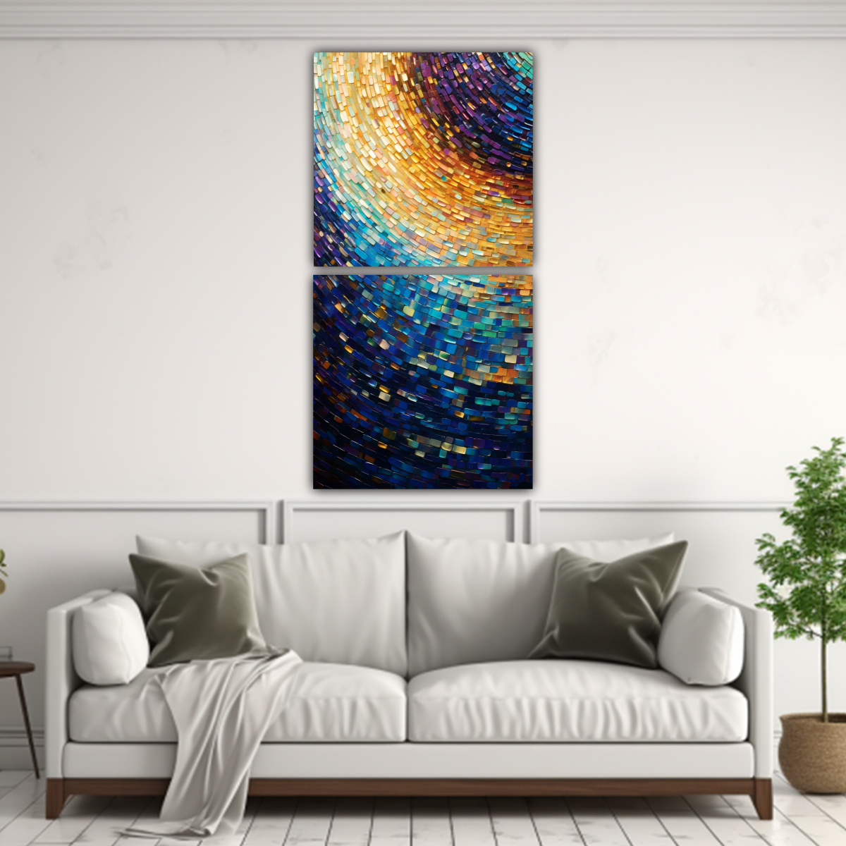 Coloca estos Cuadros Abstractos Luminosos de Puntos en Combinación en tu sala de estar para agregar un toque moderno y elegante Combínalos con muebles de colores neutros y accesorios en tonos dorados para crear un ambiente sofisticado y acogedor