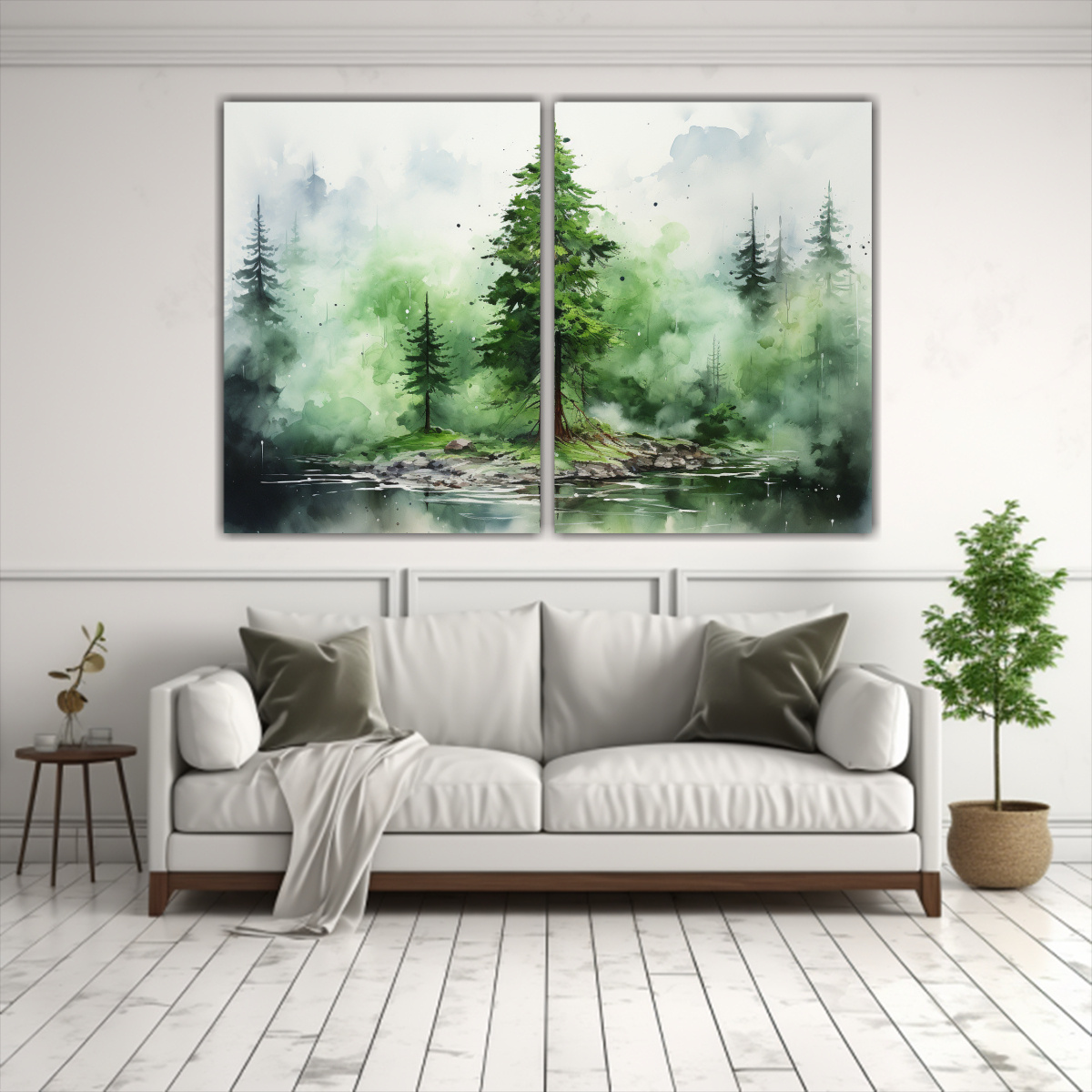 Cuadros Abstractos Minimalistas Árbol Pino Verde Y Blanco
