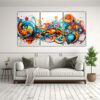 El cuadro ‘Cuadros abstractos modernos en bastidor: Sensibilidad artística en 3 telas coloridas’ sería perfecto para decorar una sala de estar moderna Colócalo sobre un sofá de color neutro para crear un contraste vibrante y da vida a la habitación La combinación de colores cálidos y fríos en el cuadro proporcionará un ambiente acogedor y elegante