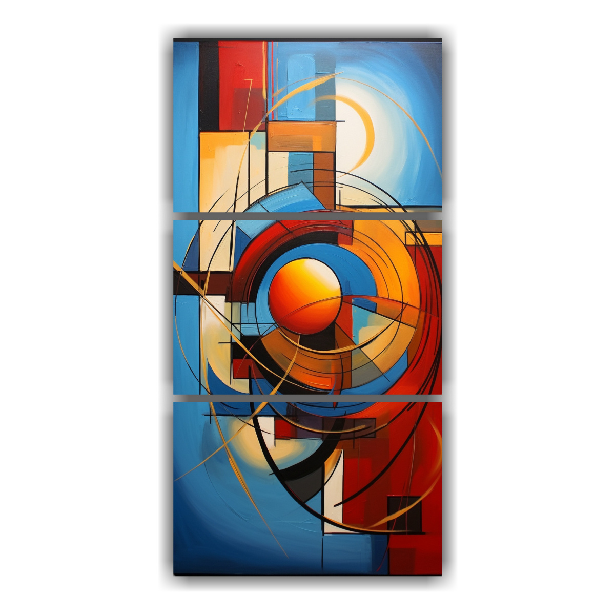 Estos cuadros modernos en tonos vibrantes son ideales para colocar sobre un sofá de color neutro, creando un contraste elegante y llamativo Completa la decoración con cojines en tonos similares y una alfombra que haga juego para un ambiente armonioso y moderno