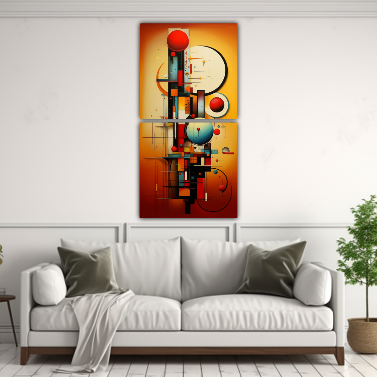 Este cuadro de dos composiciones de creatividad vertical en tonos plateado, negro, dorado, marrón, mostaza, anaranjado, menta, verde azulado y carmesí se vería ideal en el living, sobre un sofá o una pared amplia Su diseño abstracto y moderno le dará un toque de estilo y elegancia a la decoración de tu hogar