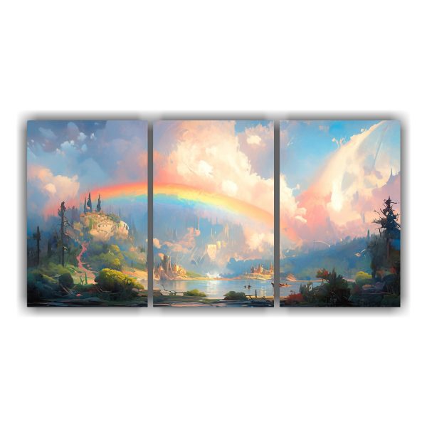 Cuadros Abstractos Paisaje Con Arcoíris Y Turquesa