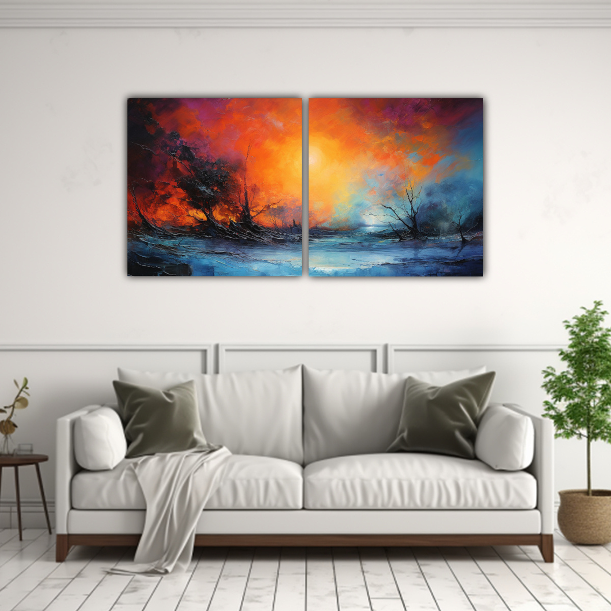 Este Cuadro Abstracto Paisaje con Vibrantes Colores sería ideal para decorar tu sala de estar Combínalo con muebles en tonos neutros para que resalte y se convierta en el punto focal de la habitación Agrega cojines en tonos similares a los colores del cuadro para lograr una armonía visual perfecta