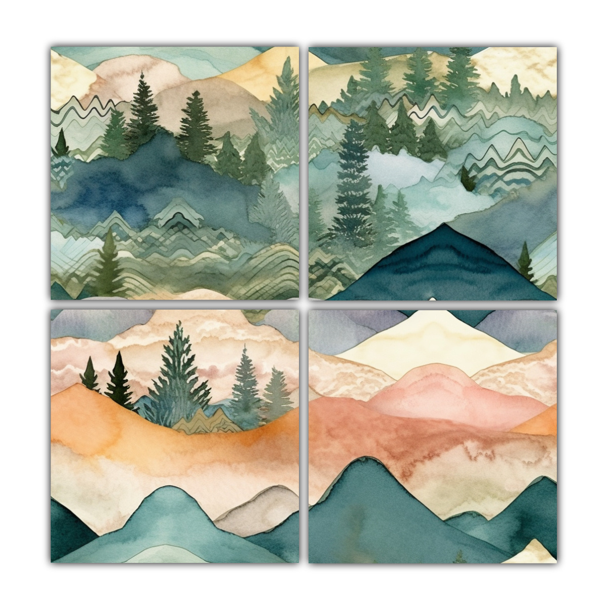 Cuadros Abstractos Paisaje Montaña Mar En Acuarela