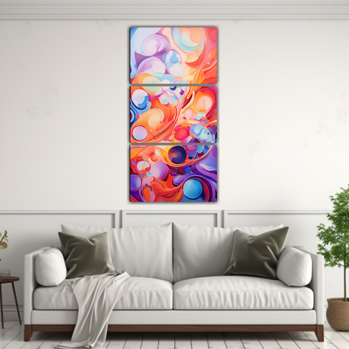 Coloca este set de cuadros abstractos en la pared principal de tu cocina para crear un punto focal llamativo Combínalos con accesorios en tonos neutros como blanco o gris para resaltar la energía de los colores ¡Transforma tu cocina en un espacio moderno y lleno de estilo!