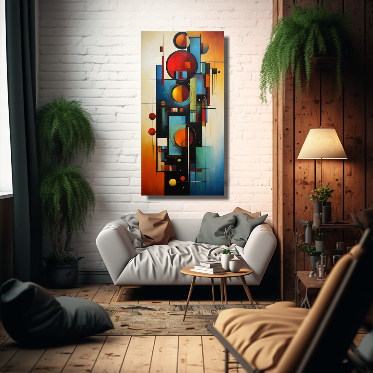 Este cuadro abstracto es perfecto para decorar tu sala de estar o tu espacio de trabajo Su combinación de colores frescos y vibrantes añadirá un toque de energía y creatividad a cualquier ambiente Colócalo en una pared blanca para que resalte y sea el centro de atención Combínalo con muebles en tonos neutros como grises o blancos para crear un contraste moderno y elegante ¡Sorprende a tus clientes y dale vida a tu espacio con este poderoso cuadro abstracto!