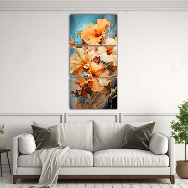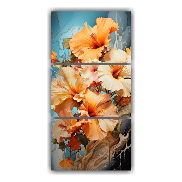 Cuadros Abstractos Perspectiva A Flores De Hibisco Naranja Y Dorado
