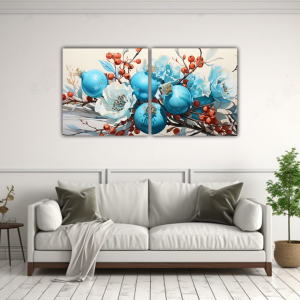 Para realzar la belleza de tu sala de estar o comedor, te recomendamos colocar este set de 2 cuadros abstractos Pomegranate Tree en una pared blanca para resaltar los tonos blanco y turquesa Complementa con muebles en tonos neutros y elementos decorativos en coral o plateado para lograr un impacto visual sofisticado y moderno ¡Crea un ambiente único y elegante en tu hogar con estos cuadros de calidad excepcional!