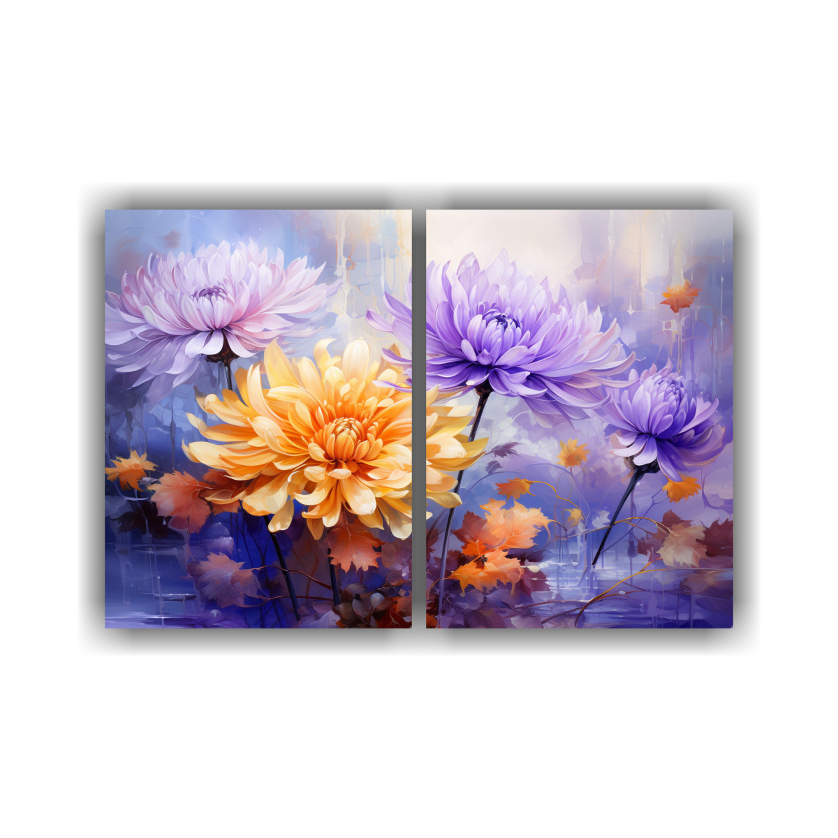 Renueva tu hogar con el arte en alta calidad de DecoCuadros Dos Canvas Abstracto Pop Art con chrysanthemums amarillos y morados para un toque único Envío gratis en Santiago