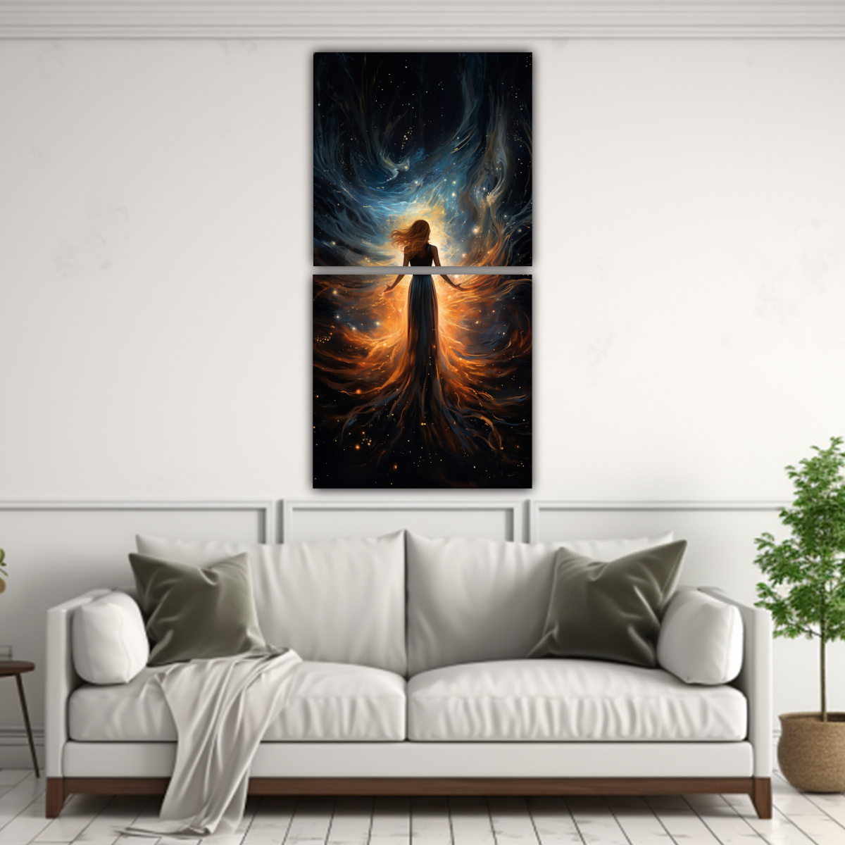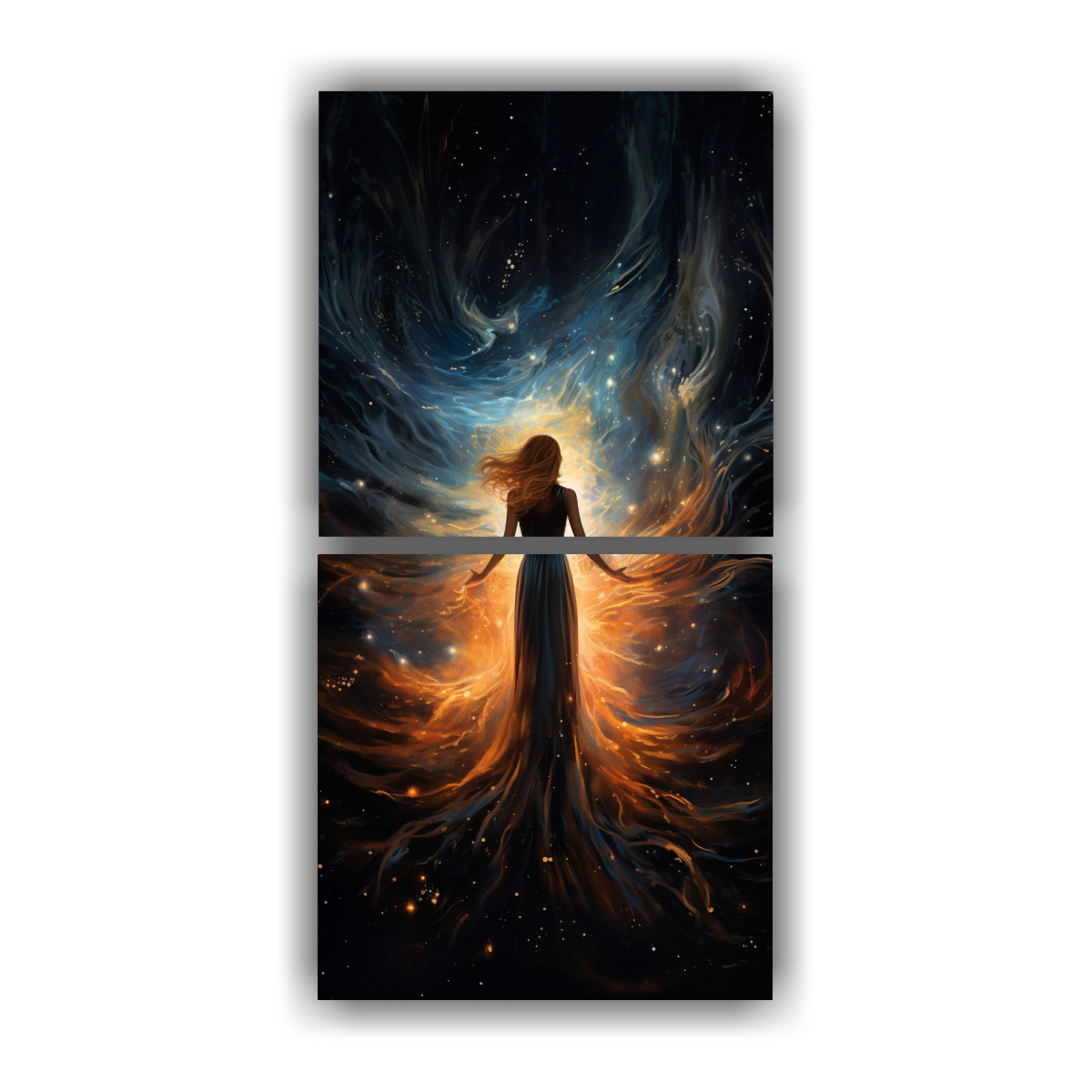 Este cuadro sería perfecto para decorar tu sala de estar o dormitorio, creando un ambiente moderno y sofisticado Combínalo con muebles en tonos neutros como el blanco o gris, y agrega algunos toques de color con cojines o accesorios decorativos en tonos dorados o plateados ¡Dale un toque cósmico y estrellado a tus espacios con este cuadro abstracto de DecoCuadros!