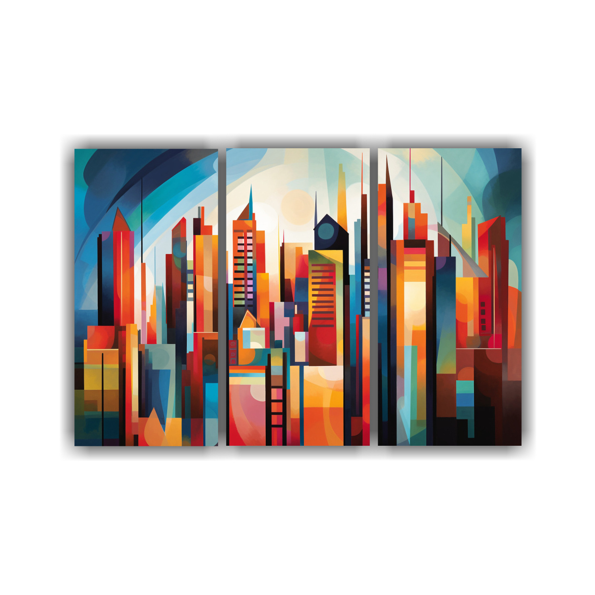 Agrega un toque moderno y sofisticado a tu hogar con este cuadro abstracto que representa una ciudad Las líneas multicolores darán vida a tus espacios Diseño exclusivo y entrega express a todas las regiones ¡Decora con estilo!