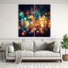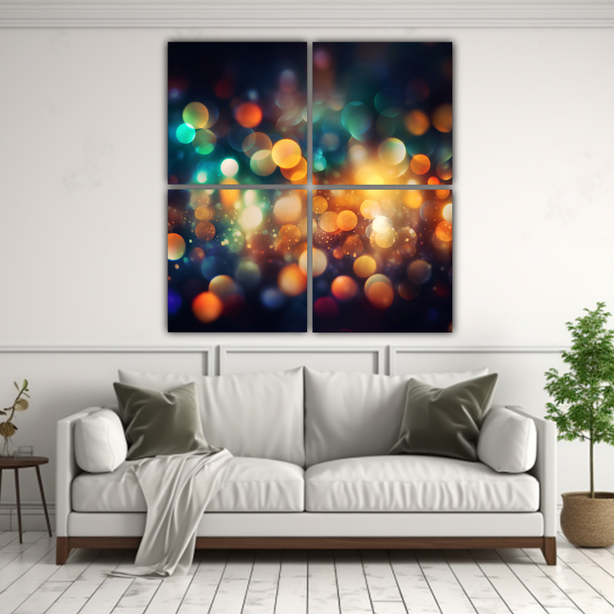 Este cuadro sería perfecto para decorar una sala de estar moderna Colócalo sobre un sofá neutral para resaltar los colores vibrantes y crear un punto focal en la habitación Complementa la decoración con cojines en tonos similares y una lámpara de pie que refleje las luces bokeh del cuadro