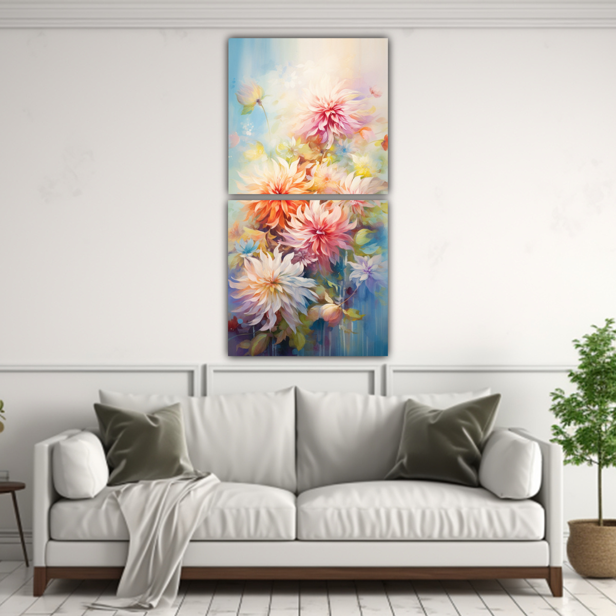Decora tus espacios con los hermosos Cuadros acuarela Dahlias Flores en colores pastel Hechos en tela de alta calidad con bastidores de madera Envíos express a regiones