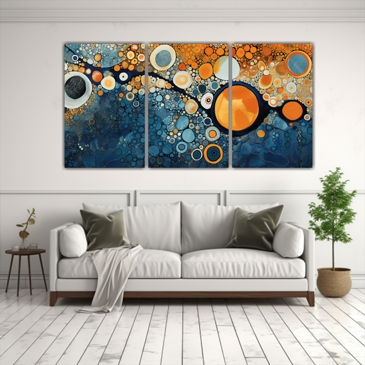 Cuadros Acuarela Decorativos Con Papel Tapiz Naranja Y Azul, Estilo Geométrico Y Ci