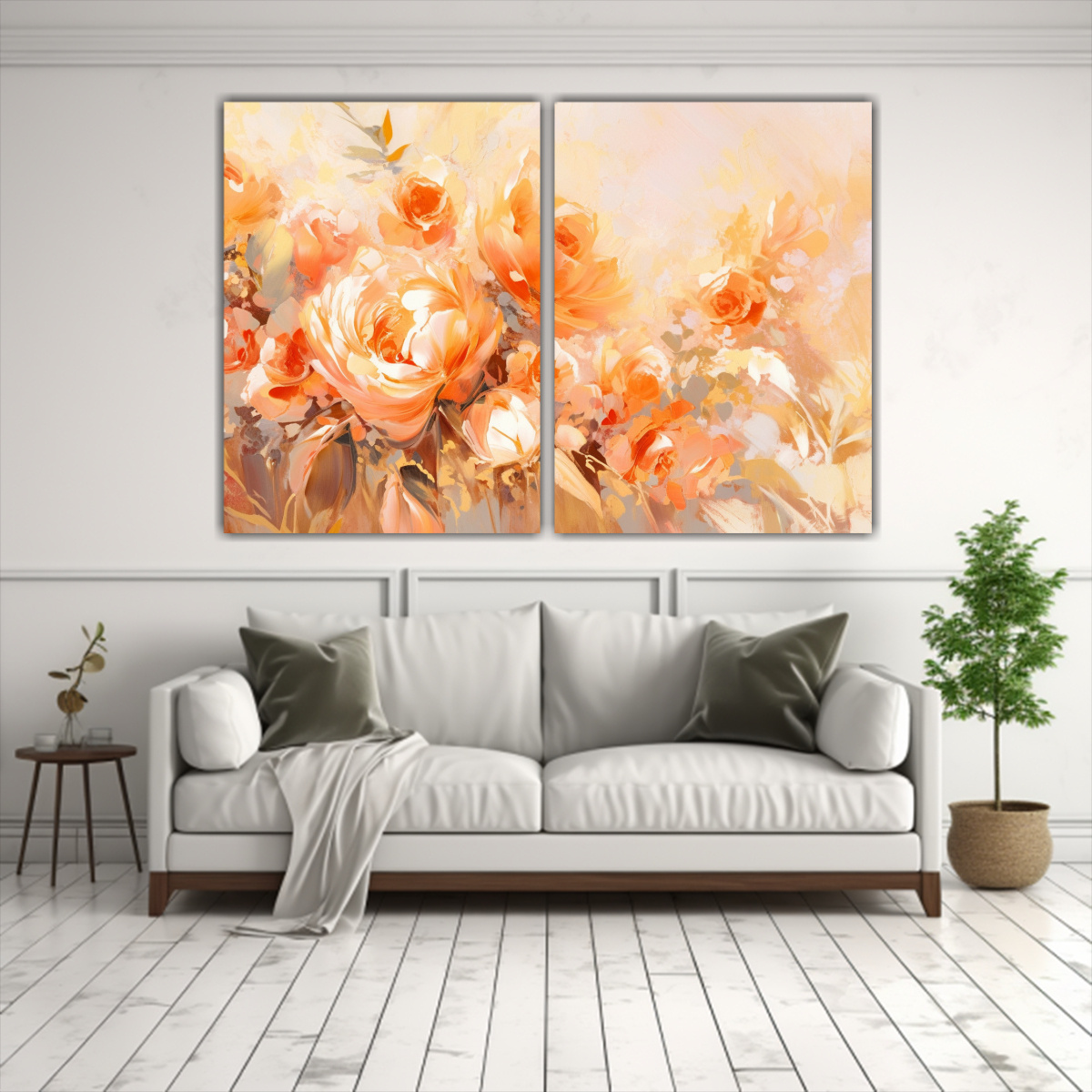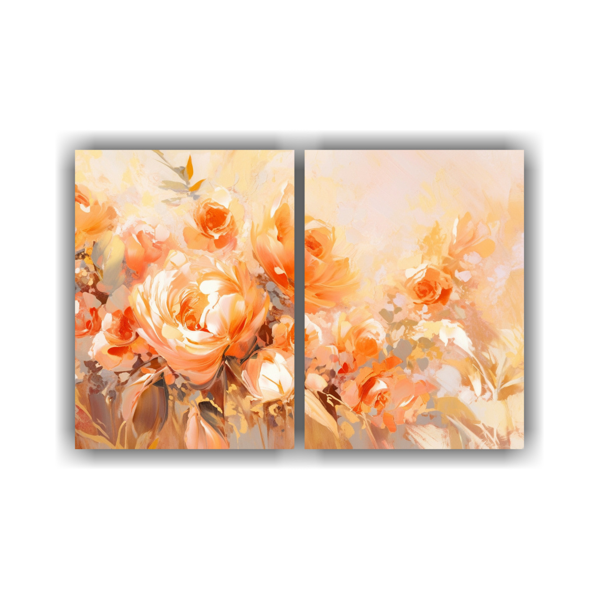 Cuadros Acuarela Flores Naranja Y Dorado En Lienzo: Decoración Con Estilo Cultural.