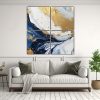 Este cuadro de intensidad blanco y oro se vería espectacular en una sala de estar moderna Colócalo sobre un sofá blanco o beige para resaltar su belleza y combínalo con cojines en tonos azules y cafés El contraste entre los colores y el diseño abstracto creará un ambiente sofisticado y acogedor
