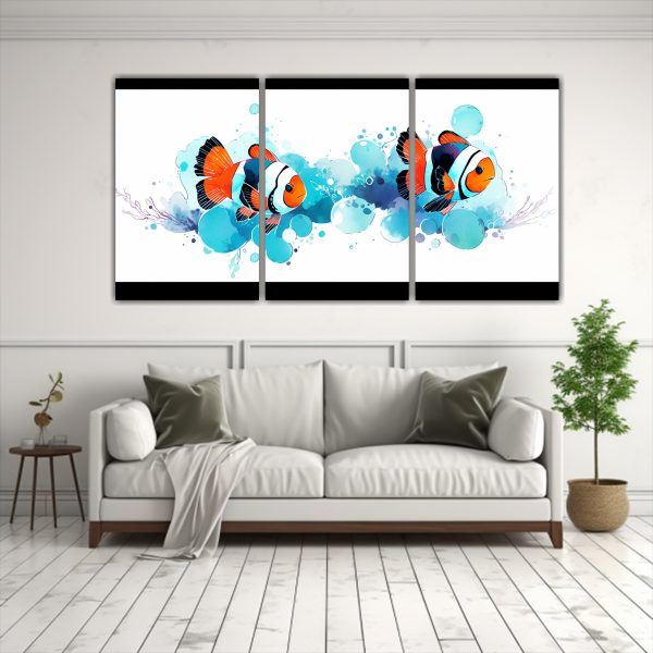 Cuadros Acuarela Linda Pez Payaso Turquesa Y Azul Estilo Neo Pop