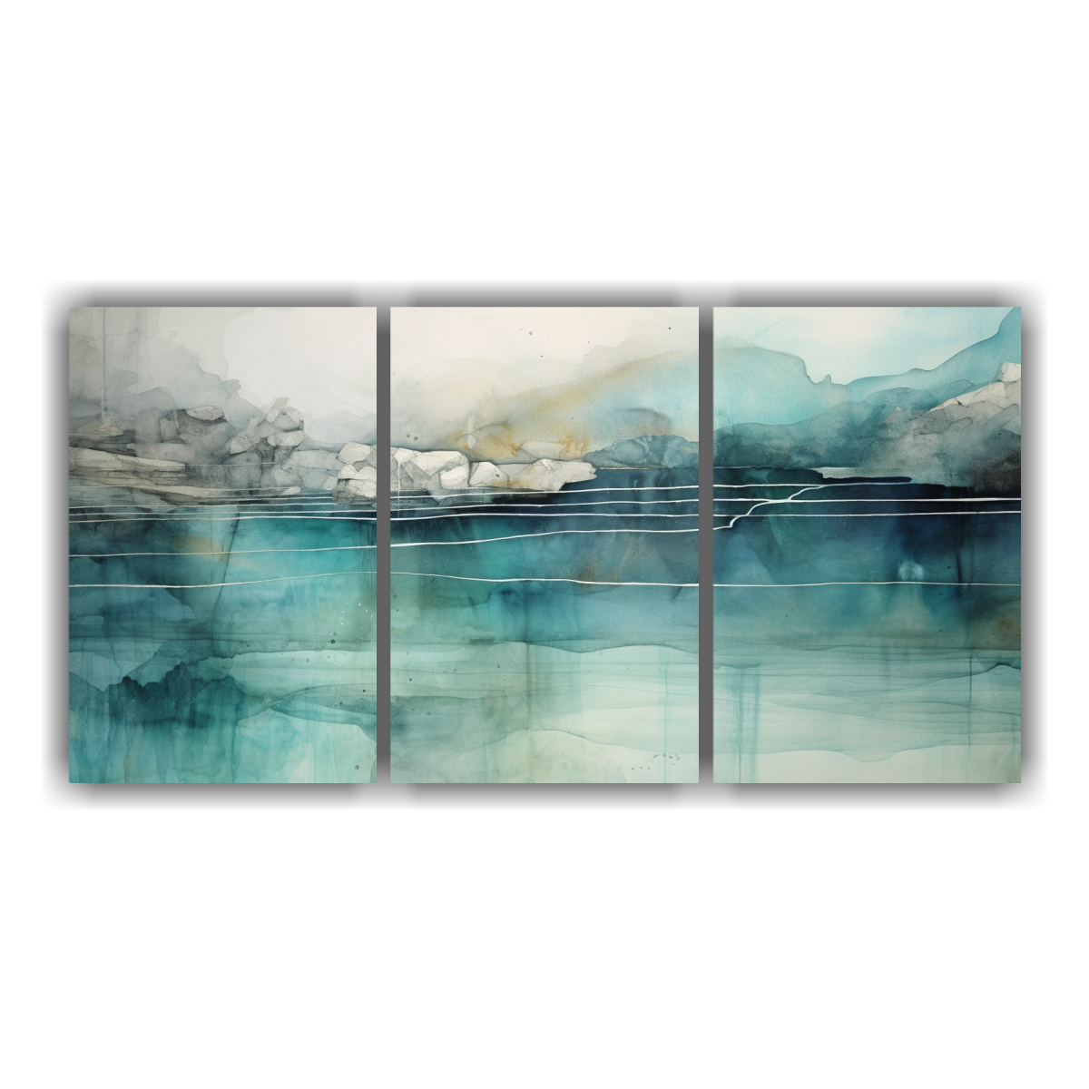 Decora tu sala con elegancia con nuestros cuadros acuarela en tonos turquesa, verde azulado y plateado Nuestros cuadros decorativos son impresos en tela de alta calidad con bastidores de madera, lo que garantiza durabilidad y resistencia Aprovecha los precios más económicos del mercado y disfruta de nuestras entregas rápidas y gratuitas en Santiago, además de envíos express a regiones Tenemos diseños exclusivos y la mejor calidad en el mercado