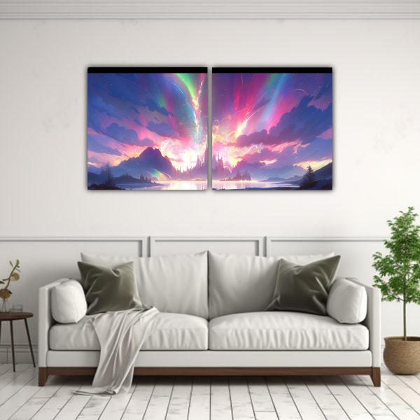 Decora tu hogar con la magia de la Aurora Boreal en tonos rosados y arcoíris Este cuadro le dará un toque único y colorido a tu sala de estar, comedor o dormitorio Calidad garantizada