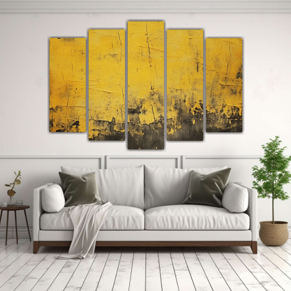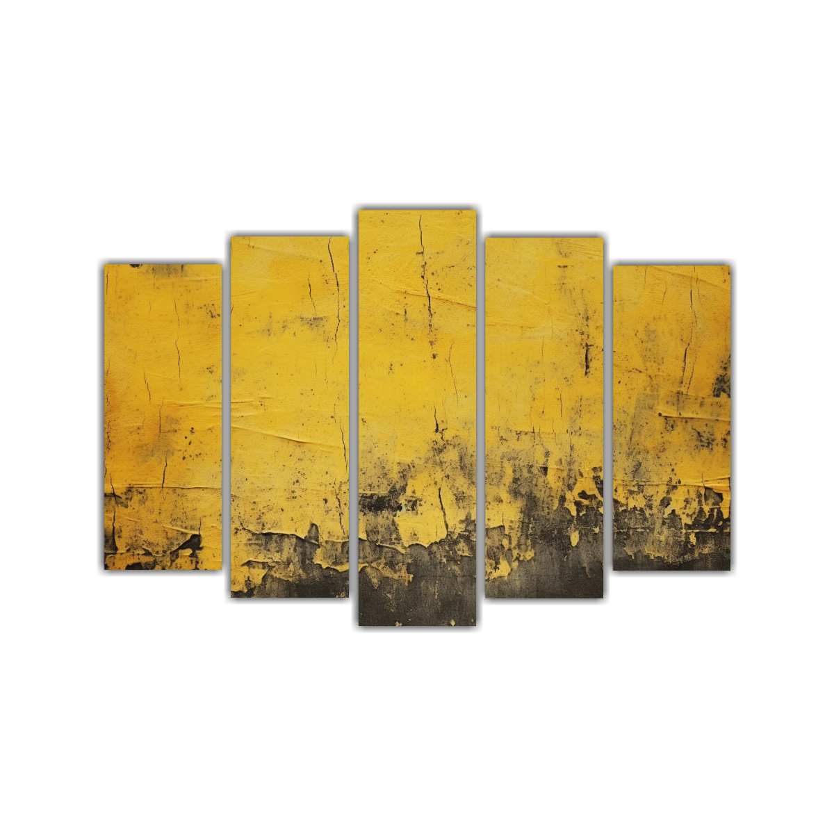 Renueva tu decoración con este Set 5 Cuadros Amarillo y Negro con estilo Grunge Impresos en tela de alta calidad con bastidores de madera Disfruta de entregas rápidas y envíos express a regiones ¡Decora con personalidad!