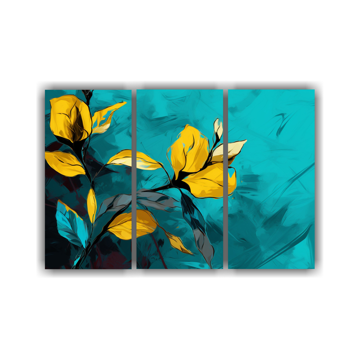 Coloca este espectacular Set de Cuadros Amarillo y Turquesa en una pared blanca para resaltar sus colores vibrantes Ideal para salas de estar modernas o espacios de trabajo creativos