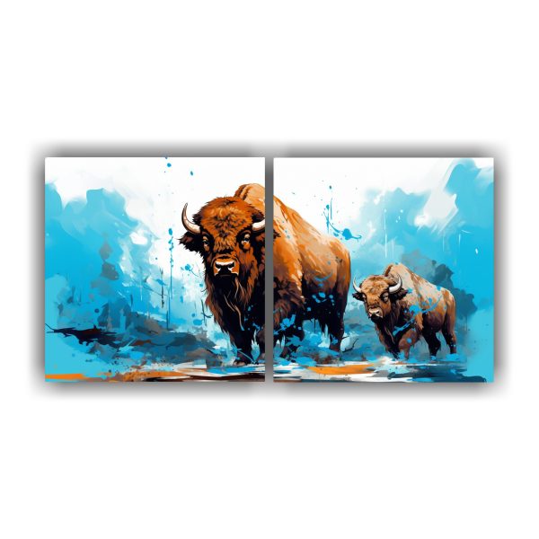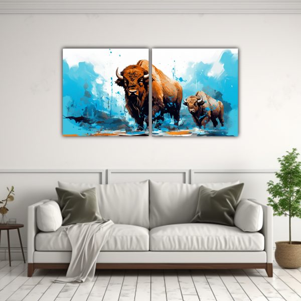 Cuadros Bison Y Buffalo En Azul, Arte Neo Pop En Decoración