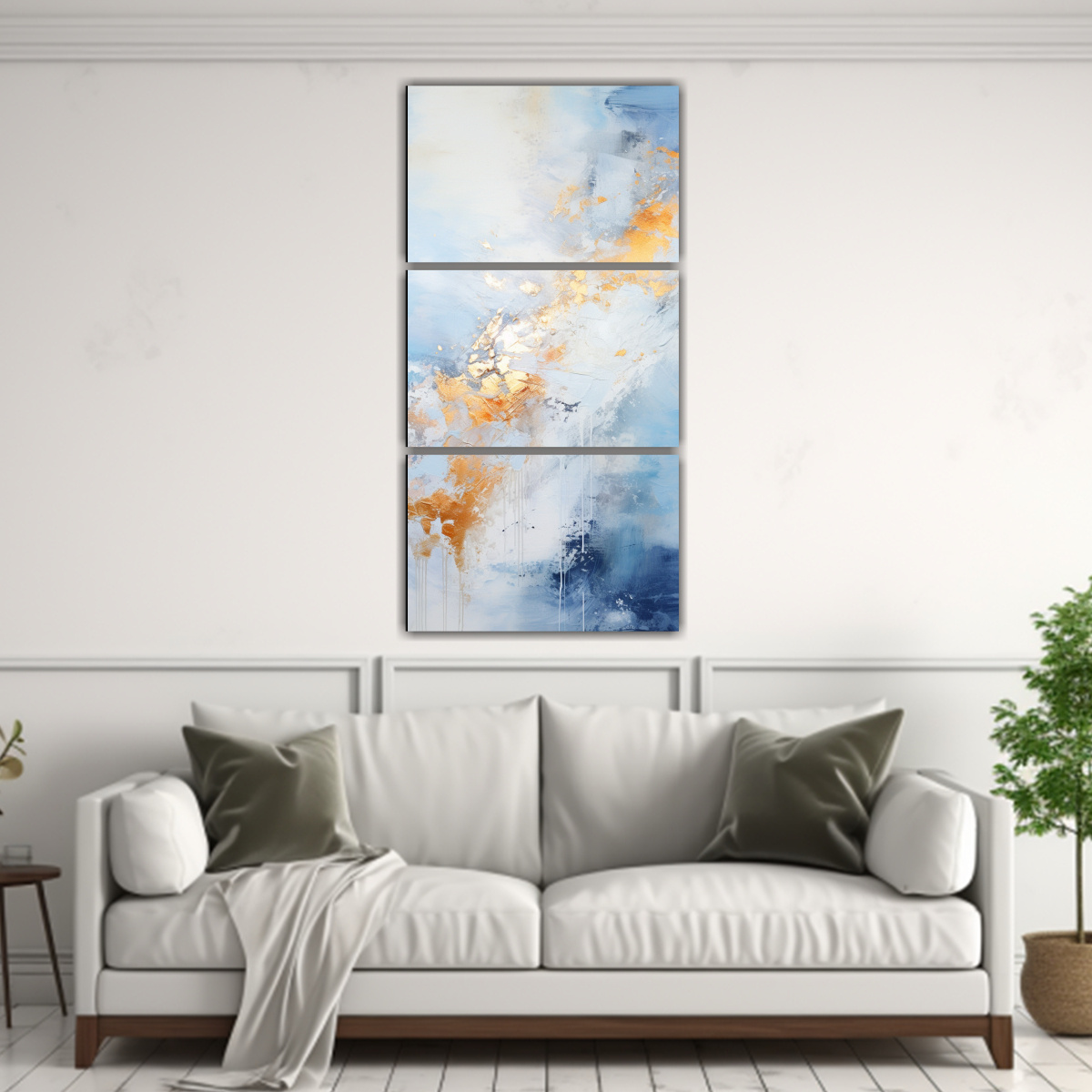Este set de 3 cuadros blancos abstractos con detalles en dorado y cobre es ideal para decorar tu sala de estar o tu dormitorio Puedes colocarlos juntos en una pared blanca para crear un impacto visual sorprendente, o distribuirlos en diferentes paredes para darle un toque de elegancia a varios espacios de tu hogar Combínalos con muebles en tonos neutros y accesorios en dorado para lograr un ambiente sofisticado y moderno ¡Atrévete a experimentar con la decoración y crea un espacio único con estos cuadros exclusivos de DecoCuadros!