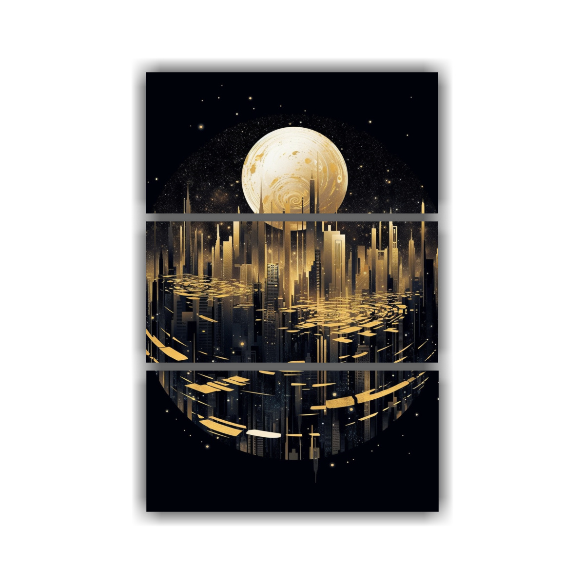 Decora tu hogar con el cuadro La Luna y una Ciudad con Cielo Oscuro de DecoCuadros Impreso en tela de alta calidad con bastidores de madera Diseño exclusivo y precios económicos Compra ahora y disfruta de la mejor calidad del mercado