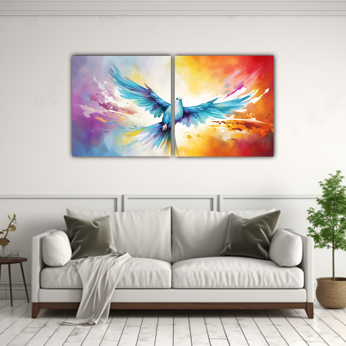 Cuadros Calidos: Paloma En Arcoiris Y Colores Pastel Arte Pop Neo.