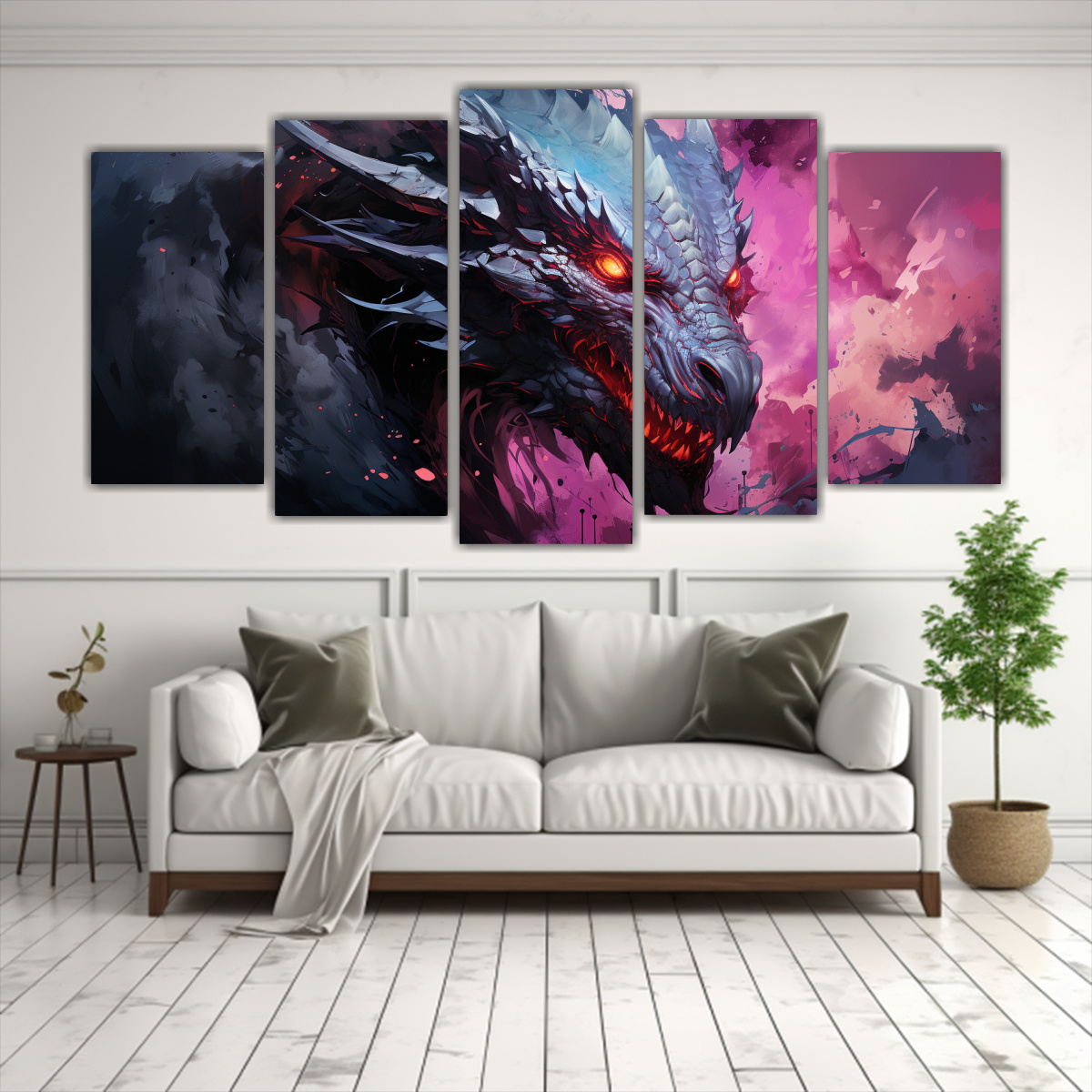 Agrega un toque mágico a tu cocina con este Cuadro de Dragón en tonos negro y rosa, ideal para crear una atmósfera neonoir La entrega más rápida y gratuita en Santiago, ¡no te lo pierdas! Colócalo sobre la mesa del comedor o en la pared junto a estanterías de cocina para un impacto visual impresionante