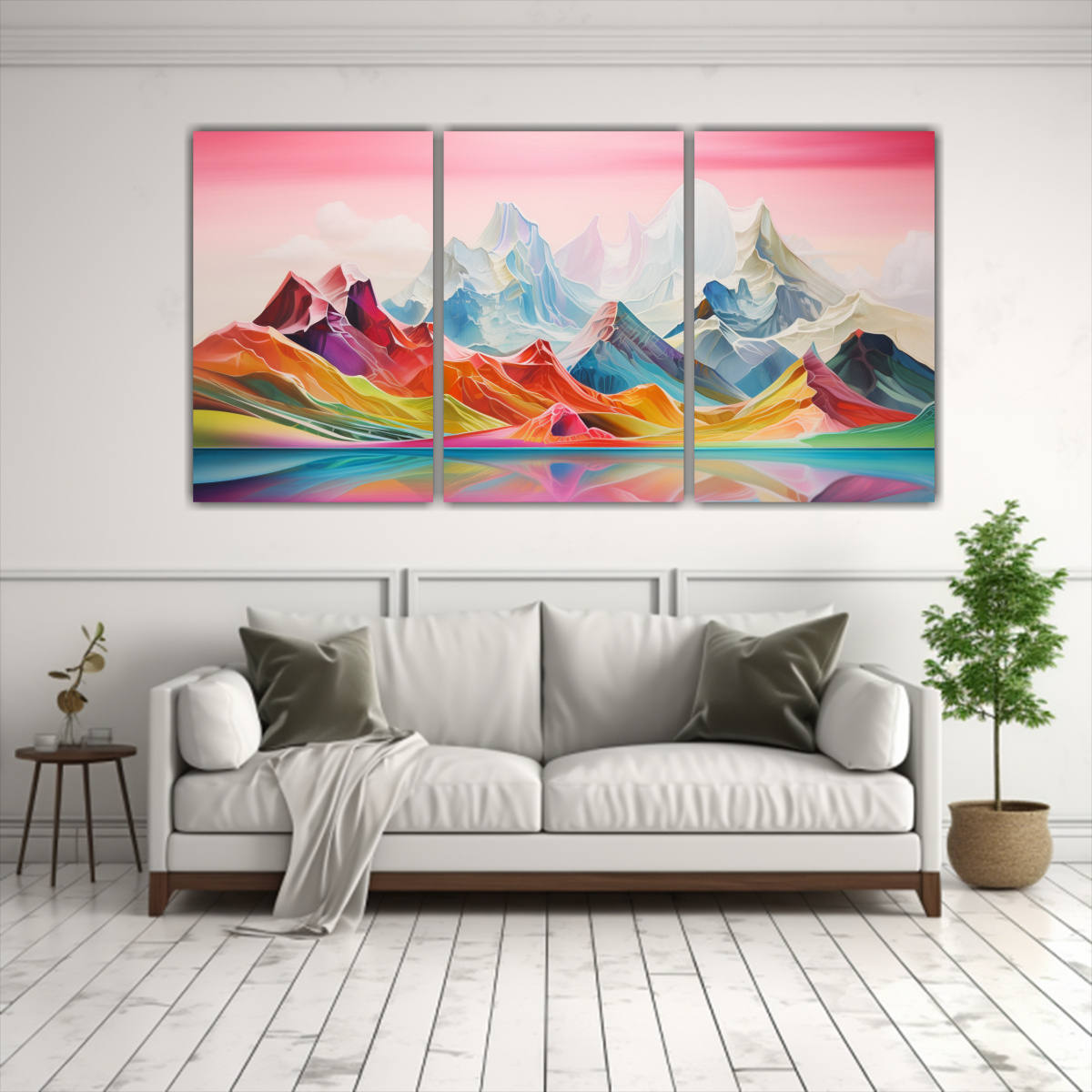Agrega un toque único a tu espacio con este cuadro que representa famosas montañas y arcoíris en tonos vibrantes Disfruta de envíos rápidos y gratuitos en Santiago, y envíos express a regiones Renueva tu decoración con estilo y originalidad