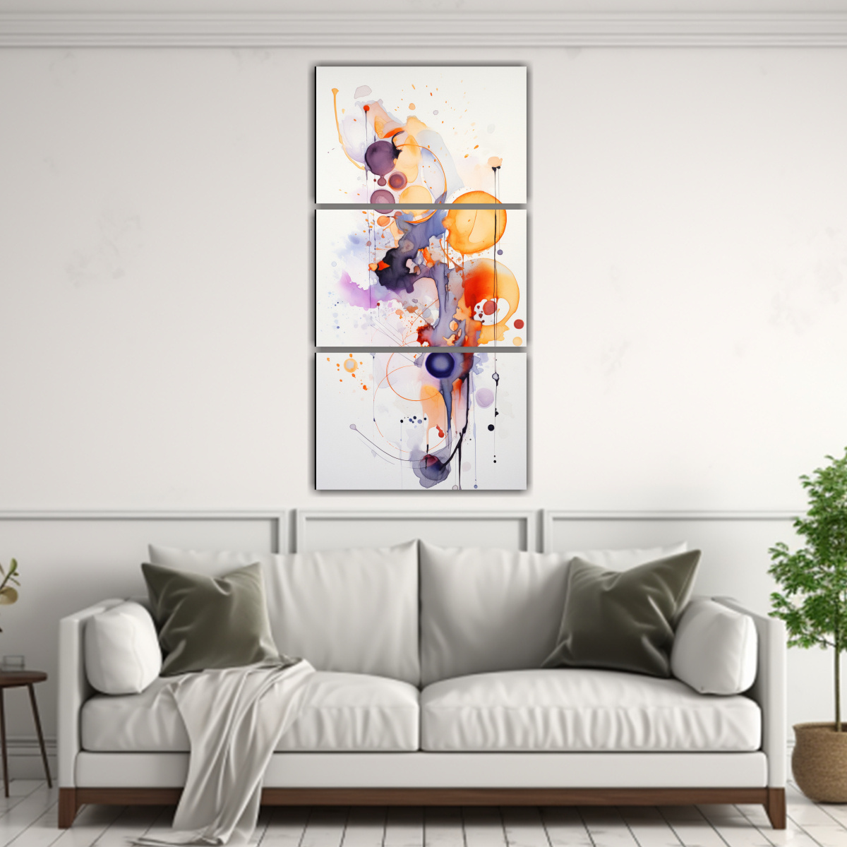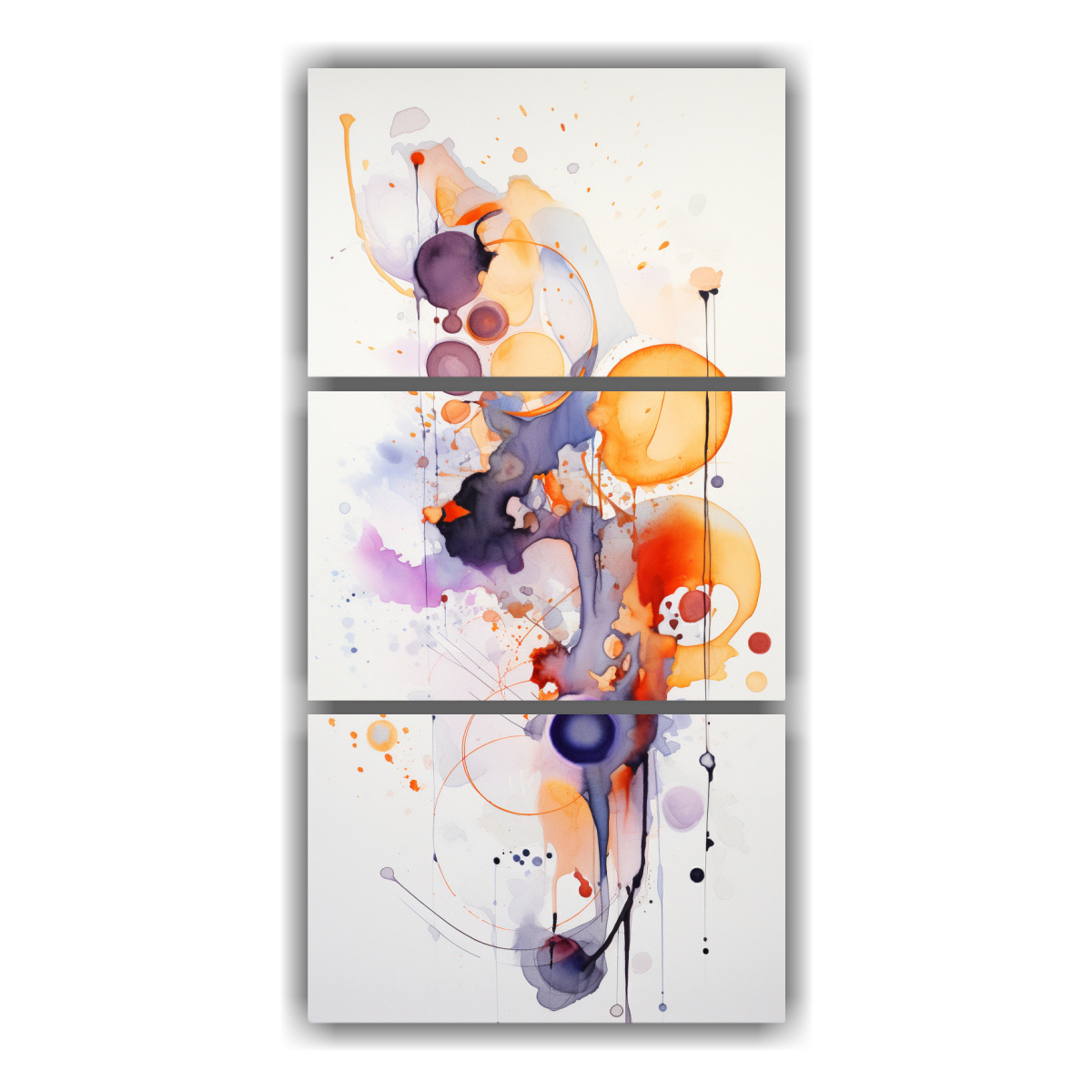 Este cuadro Pop Art watercolor splashes abstraction en colores Beige, Dorado, Coral, Lila, Amarillo Claro, Carmesí, Plateado y Gris se vería espectacular en el salón de tu hogar Combínalo con muebles de tonos neutros y complementa la decoración con cojines en los mismos colores ¡Aportará un toque de modernidad y color a tu espacio!
