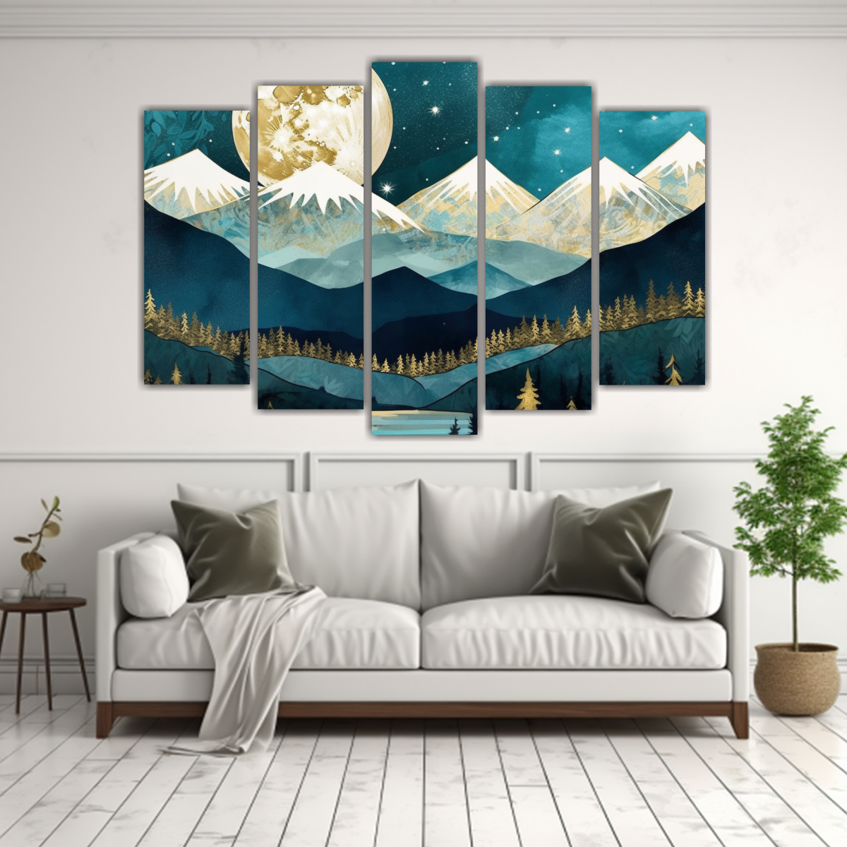 El set de cuadros ‘Luna sobre montañas azules’ es perfecto para darle un toque mágico a tu hogar La combinación de colores y la vista de la luna sobre las montañas crean una atmósfera única ¡Aprovecha nuestras entregas rápidas y gratuitas en Santiago y envíos express a regiones!