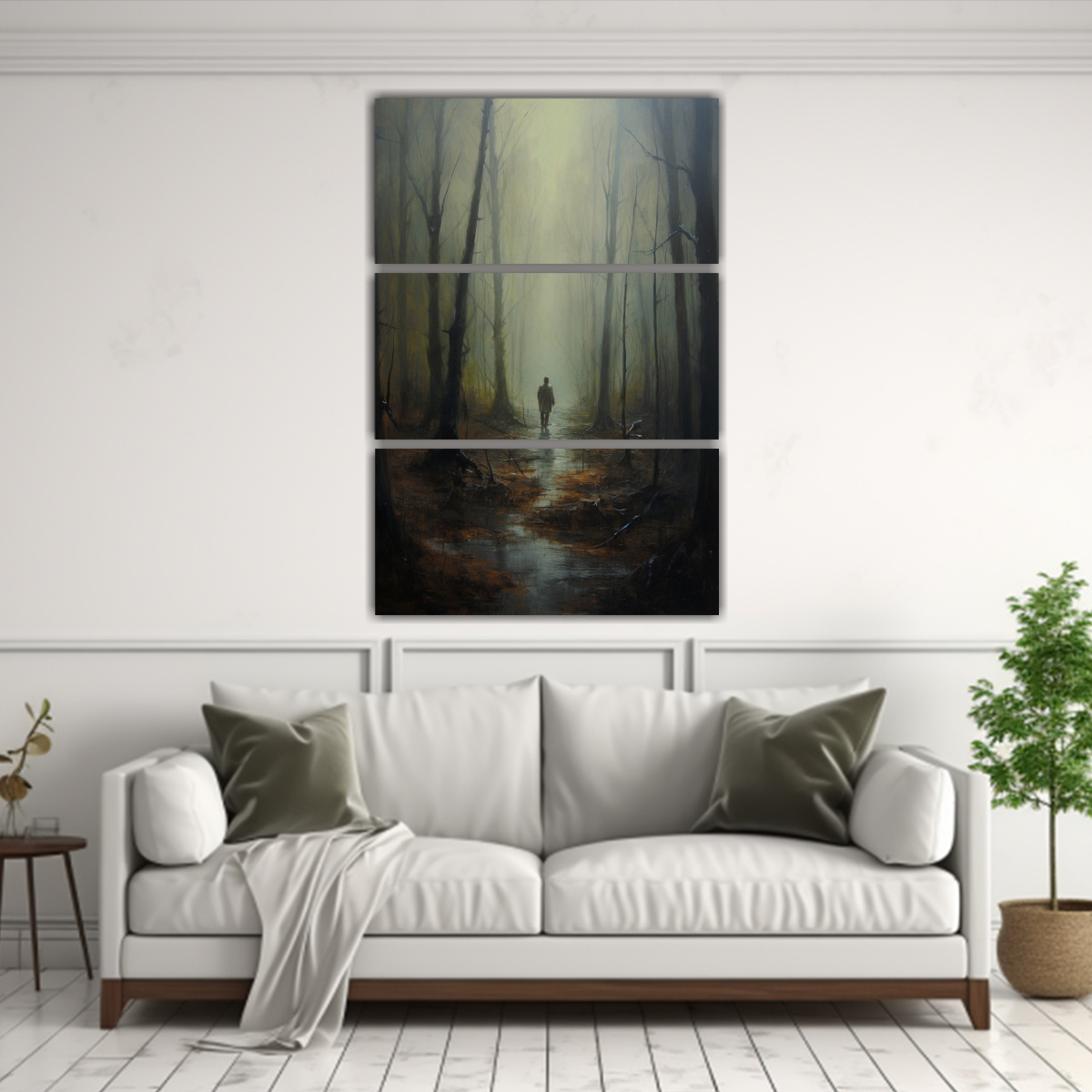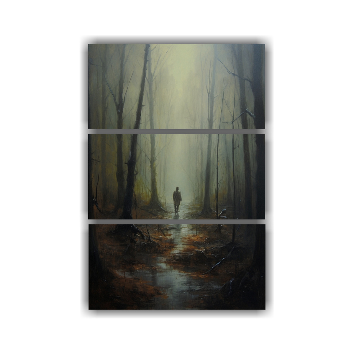 Compra los Cuadros Concepto Urbano Figura Solitaria en Bosque Oscuro en DecoCuadros y dale un toque de estilo a tus paredes Disponibles en gris, negro y azul marino grisaceo Calidad y precio inigualables en el mercado