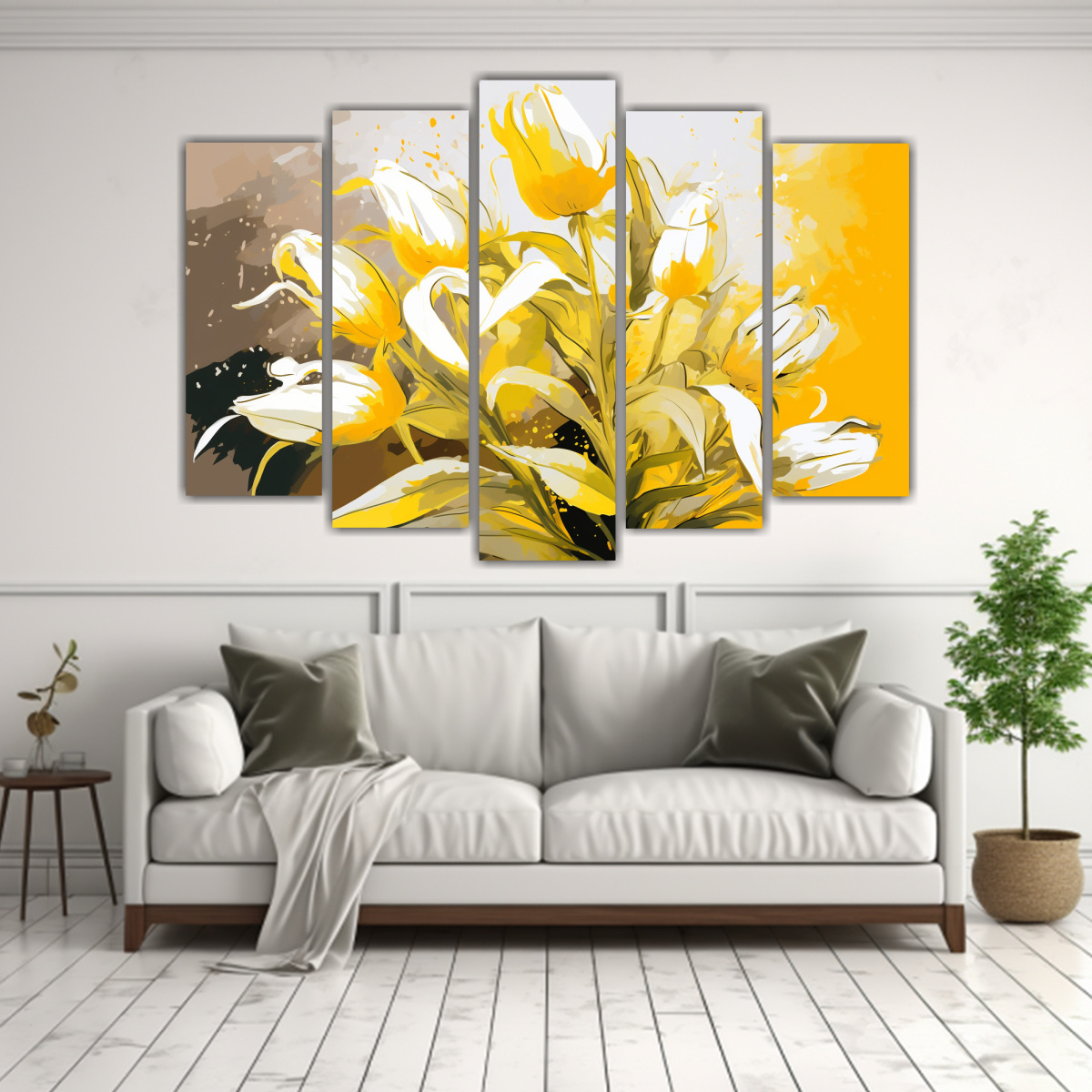 Este cuadro encajaría perfectamente en un ambiente moderno y minimalista, colócalo en la sala de estar sobre un mueble de color blanco para resaltar su diseño exuberante Combínalo con cojines en tonos dorados y plateados para crear un espacio sofisticado y original