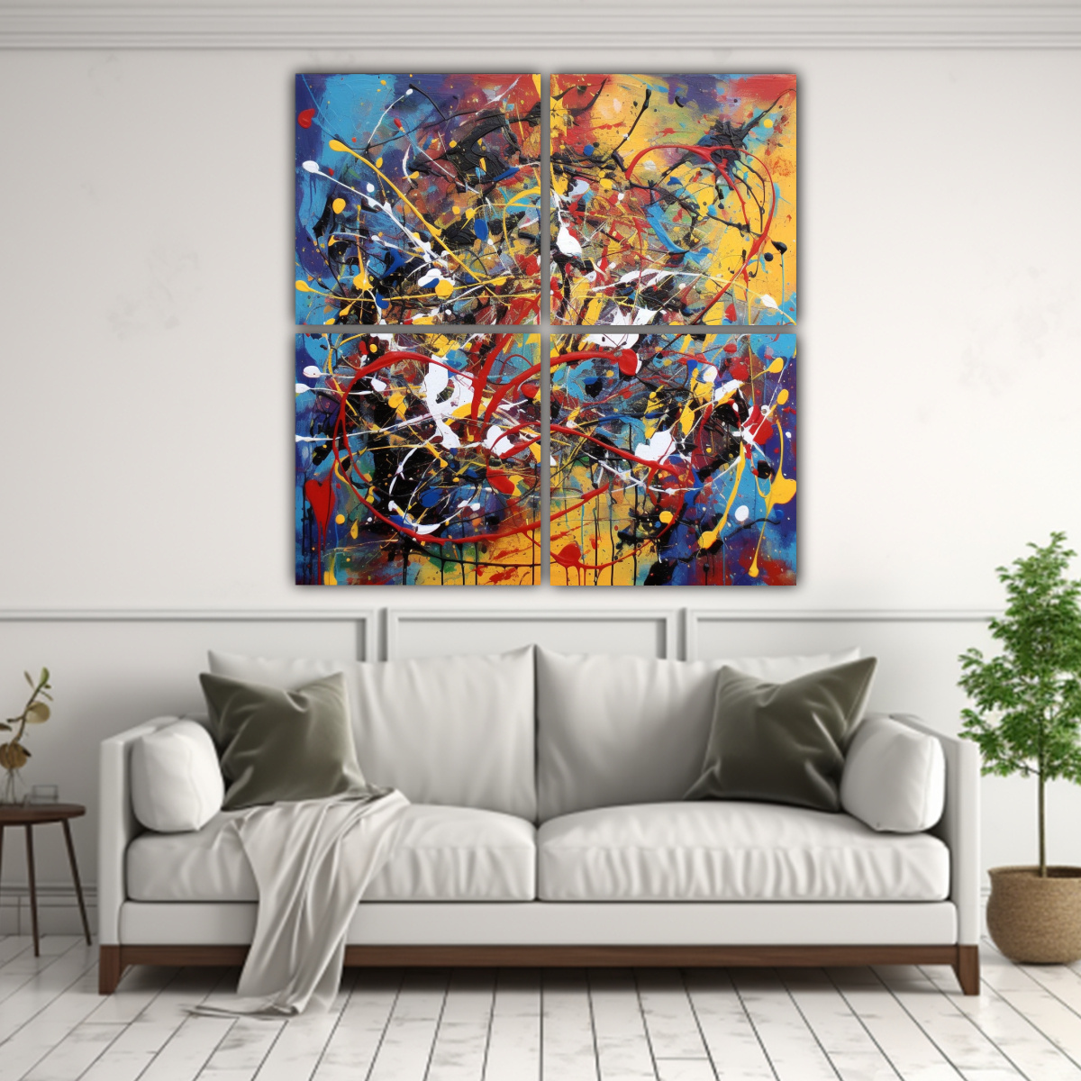 Coloca uno de nuestros cuadros creativos inspirados en el estilo artístico de Jackson Pollock en tu sala de estar para crear un ambiente moderno y sofisticado Combínalo con muebles en tonos neutros como blanco o gris, y agrega toques de color en los cojines y accesorios decorativos Este cuadro se convertirá en el punto focal de tu espacio, añadiendo un toque de arte y elegancia a tu hogar