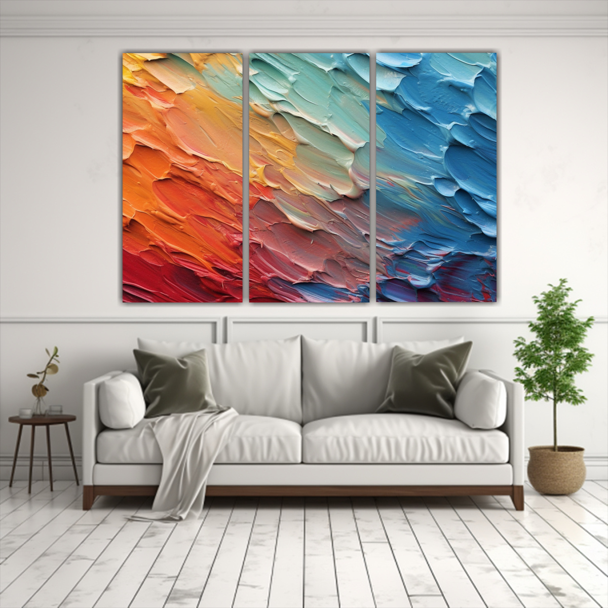 Este conjunto de cuadros Arcoíris Pinceladas y Texturas es ideal para decorar tu sala de estar Colócalos juntos en una pared blanca para resaltar los tonos vibrantes y crear un ambiente moderno y alegre