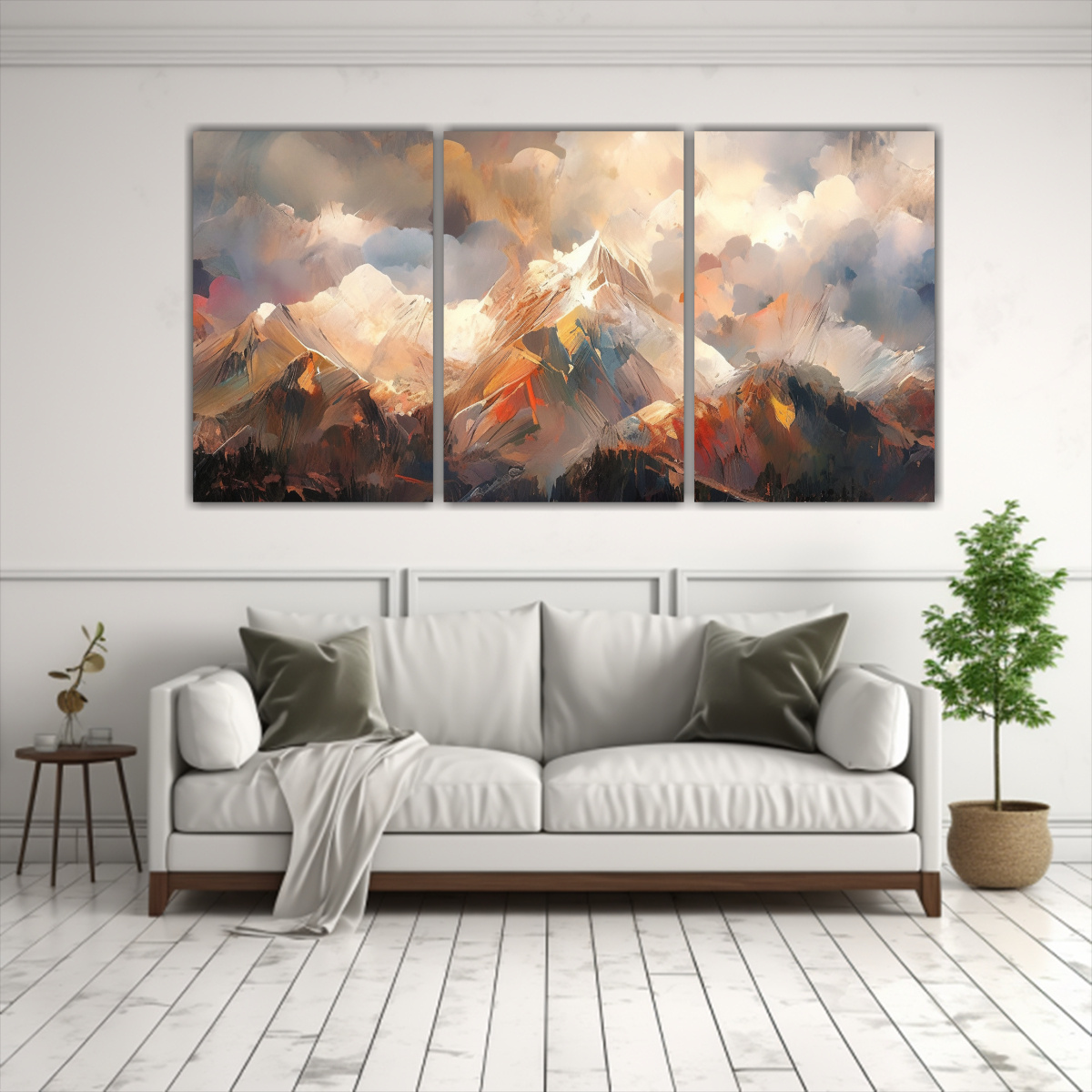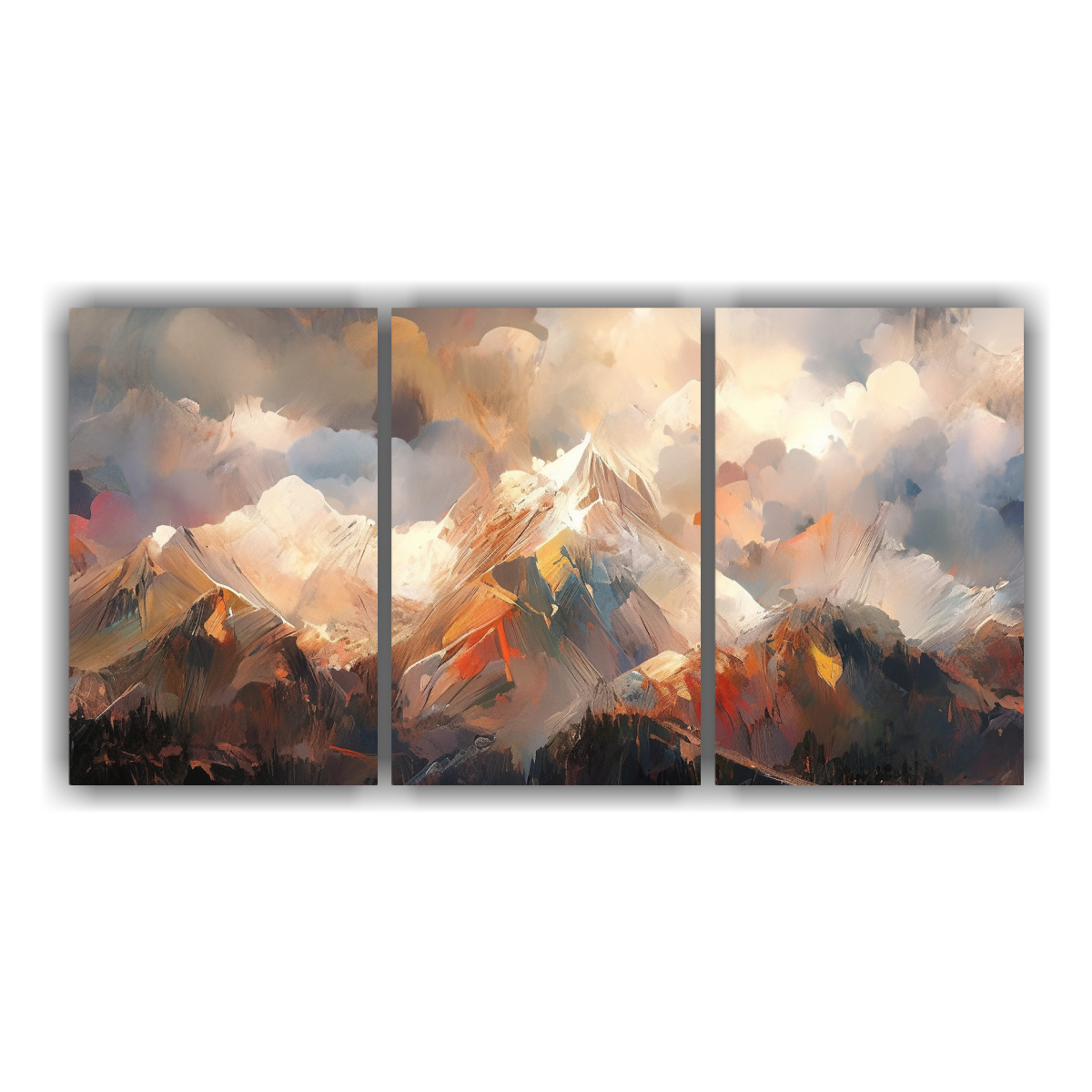 El Cuadro Calle Arte Montañas Nevadas Arcoíris Colores Abstractos Marrón es perfecto para dar un toque único a tu sala de estar, dormitorio o estudio Sus colores Gris, Azul Marino grisaceo y Chocolate se complementan a la perfección ¡No te quedes sin el tuyo!