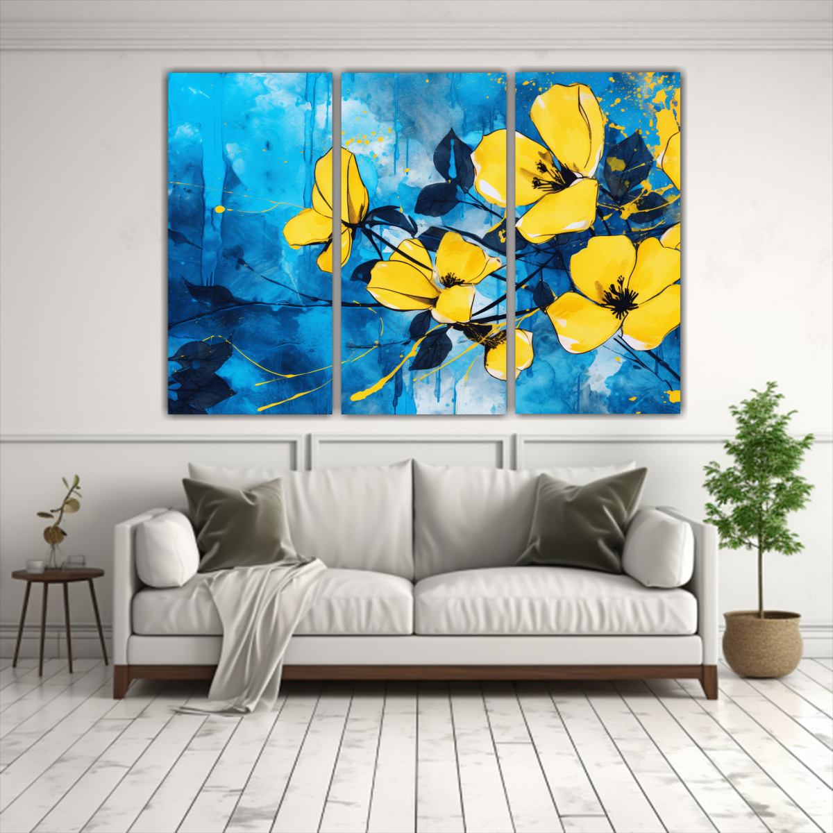 Cuadros Cuadro Floral Amarillo Y Azul Estilo Neonoir