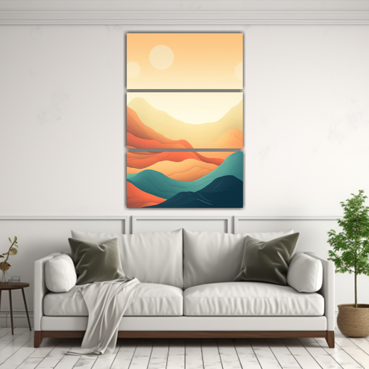 Este cuadro de Montañas Abstractas Minimalistas 4k Dreamlike MidCentury es perfecto para decorar tu sala de estar o tu dormitorio Colócalo encima de tu sofá o de tu cama para lograr un efecto impactante y moderno Combínalo con muebles en tonos neutros y elementos decorativos en colores vibrantes para crear un contraste visual interesante ¡Impresiona a tus invitados con este diseño exclusivo de DecoCuadros!