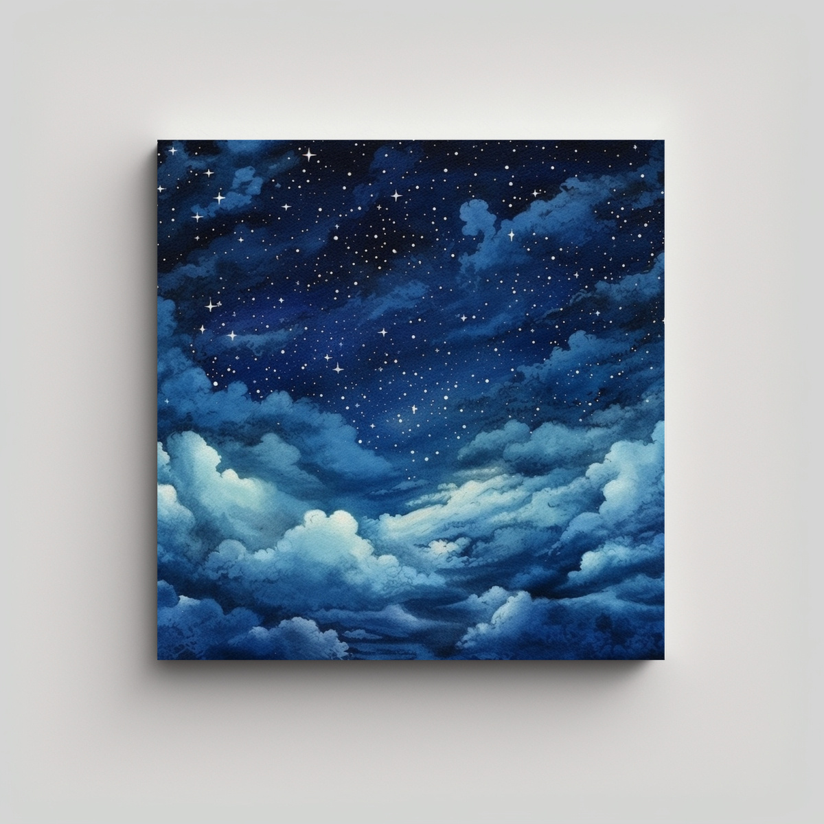 Dale un toque de serenidad a tu espacio con este Cuadro de Arte Moderno que refleja la calma nocturna con estrellas y nubes Diseño exclusivo y entrega rápida y gratuita en Santiago Envíos express a regiones