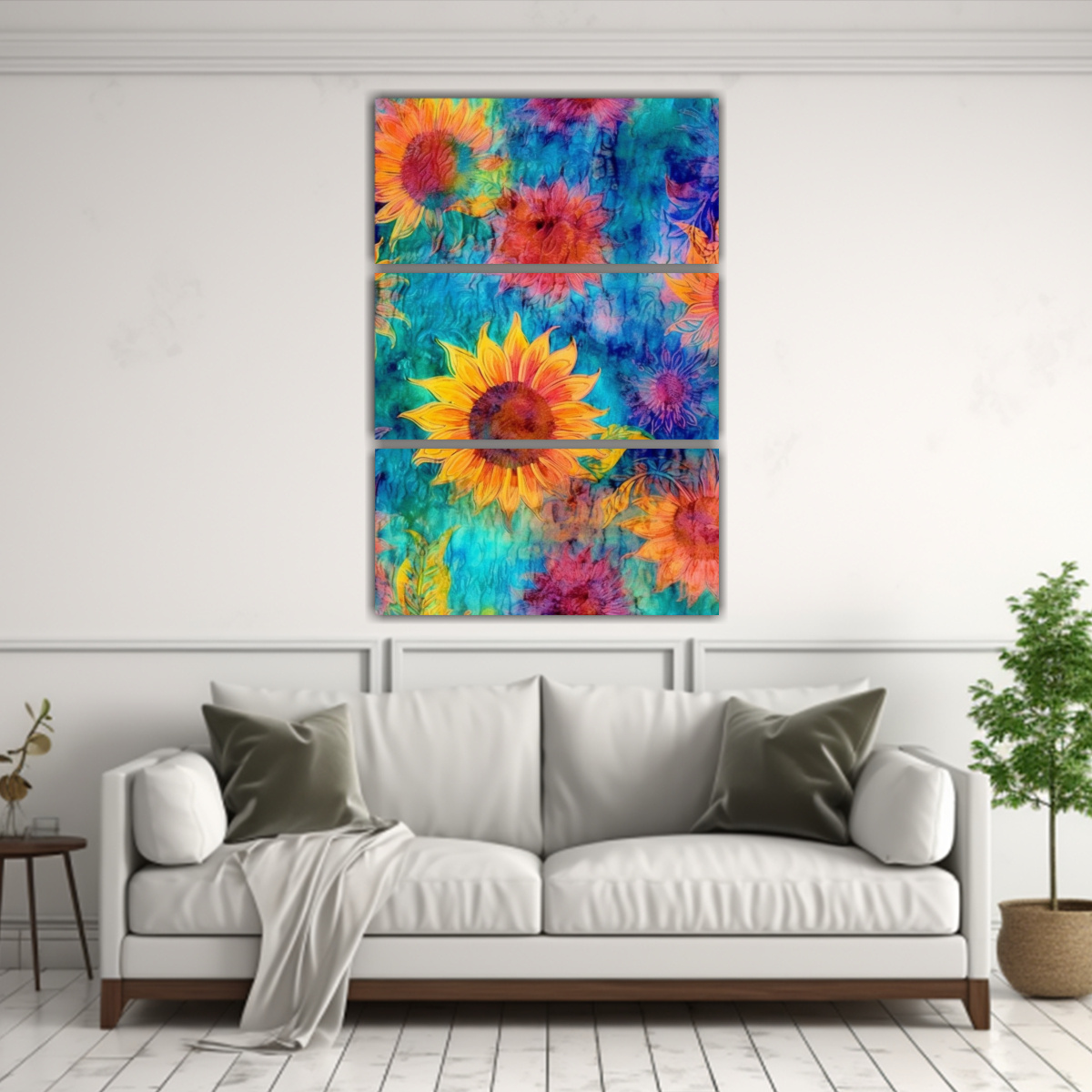 Cuadros De Cuadro De Composición Dinámica Con Flores De Girasol Acuarela Batik Pintura Enérgica