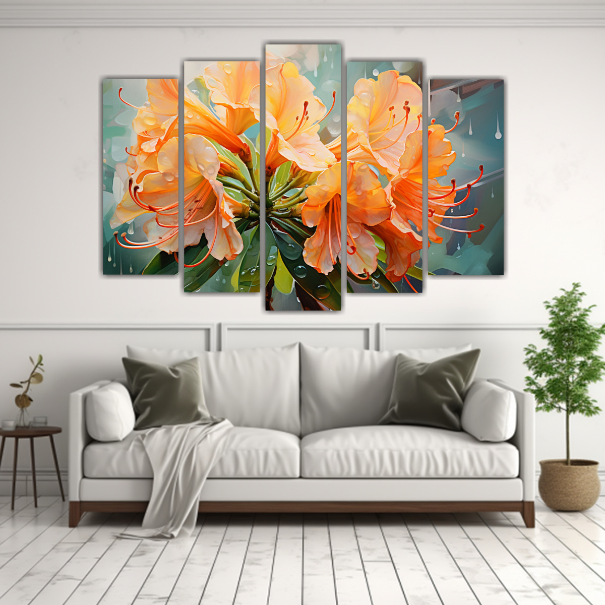 Cuadros De Decoración Abstracta De Alegría A Rododendros Verdes Y Naranjas