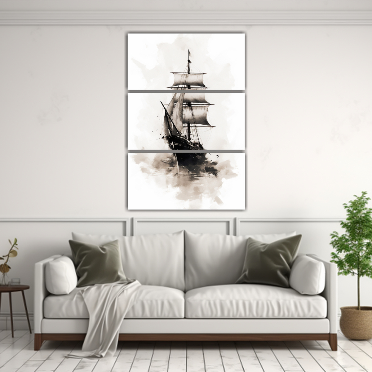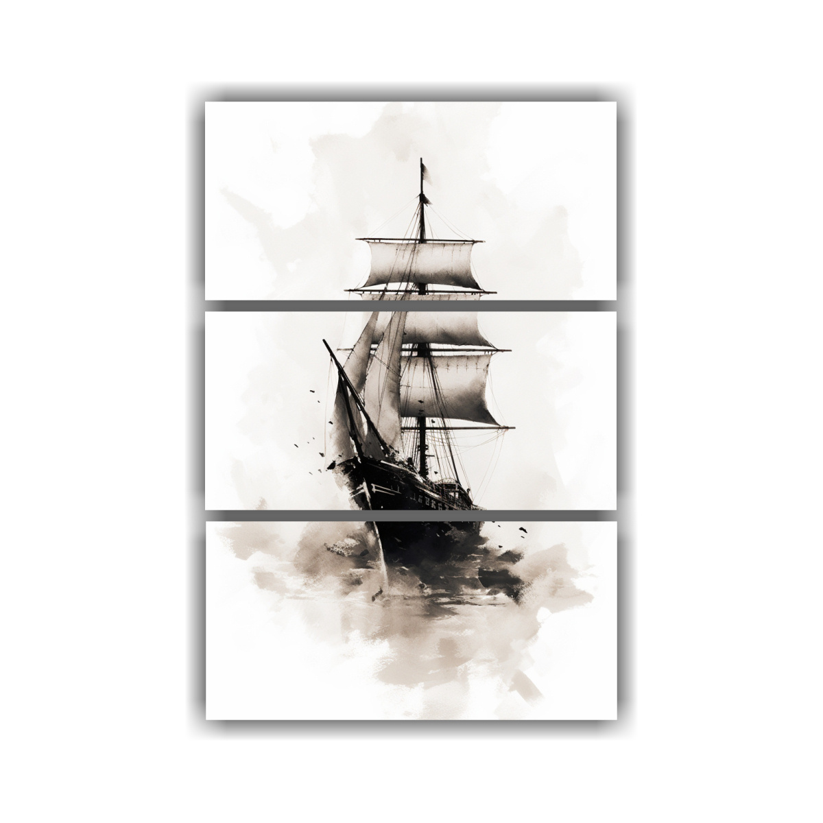 Cuadros De Decoración De Estilo Chino Con Representación Conceptual De Barco De Vela En Blanco Y Negro (Set 3)