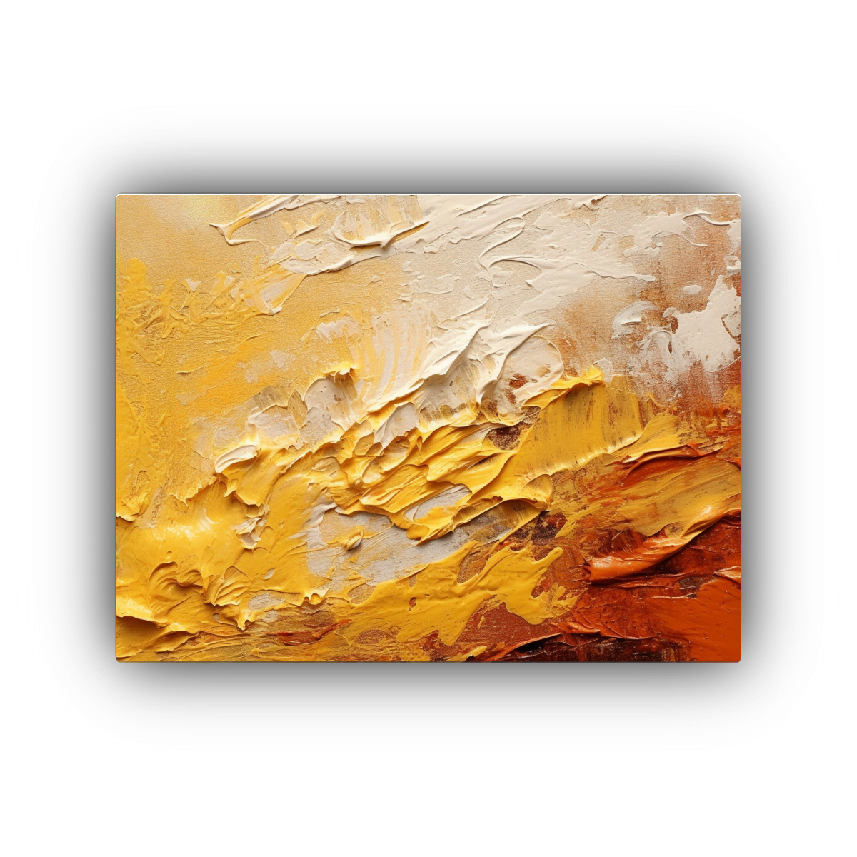 Coloca este cuadro de expresión actual amarillo y dorado en el salón principal de tu hogar para aportar luminosidad y elegancia Combínalo con muebles en tonos neutros y accesorios en amarillo o dorado para lograr un ambiente sofisticado y moderno