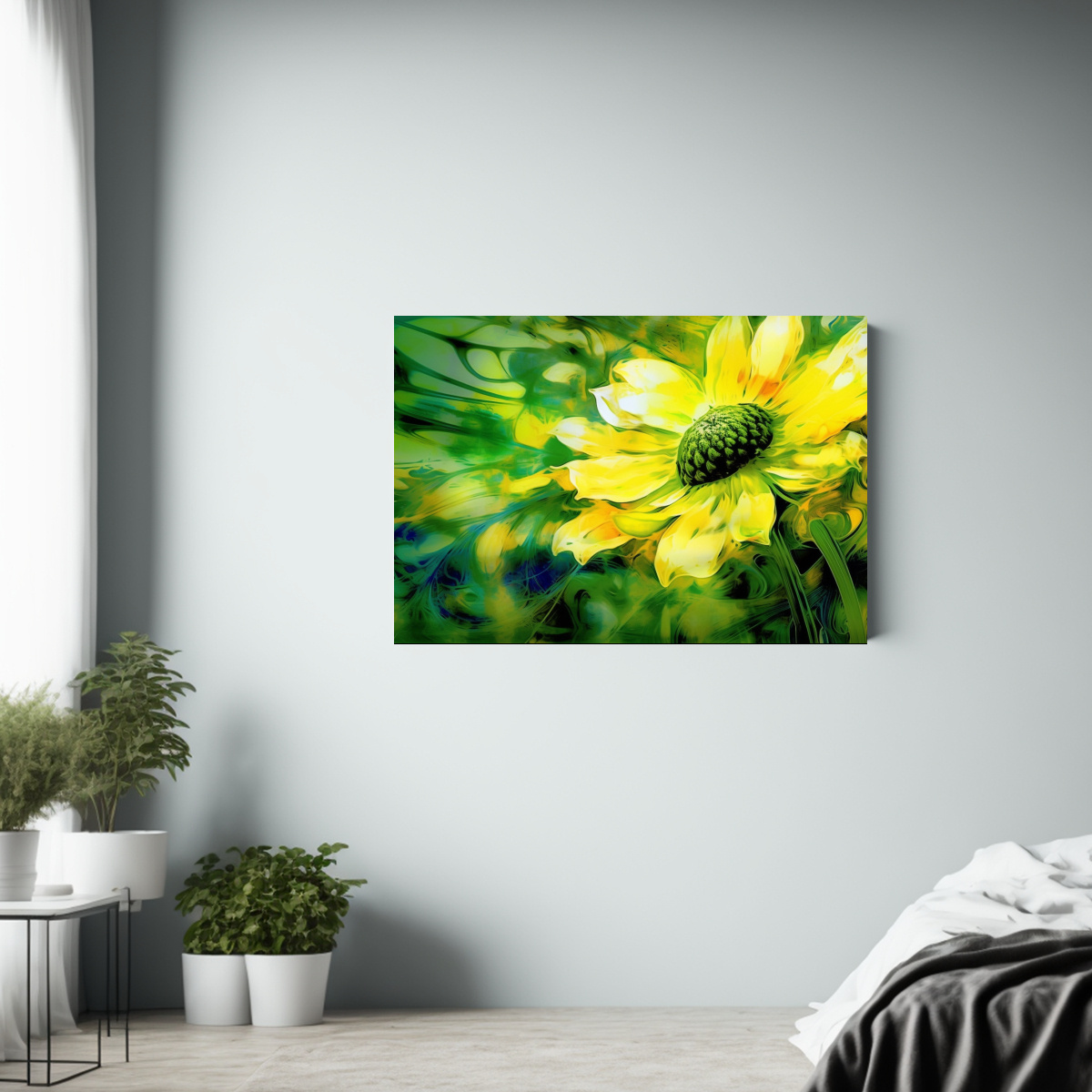Este cuadro de flores en estilo fluido con colores vibrantes y cálidos sería ideal para decorar una sala de estar o un dormitorio, creando un punto focal elegante y moderno Combínalo con muebles en tonos neutros para resaltar su belleza y añadir un toque de frescura a la decoración de tu hogar