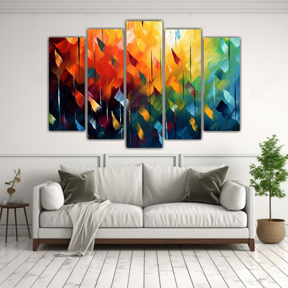 Coloca este set de cuadros en tu sala de estar para crear un ambiente moderno y sofisticado Combina los colores con cojines en tonos neutros para resaltar su belleza y darle un toque único a tu espacio