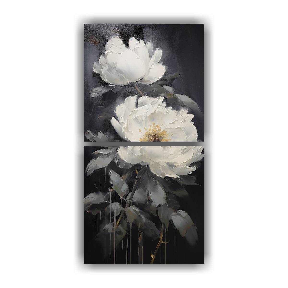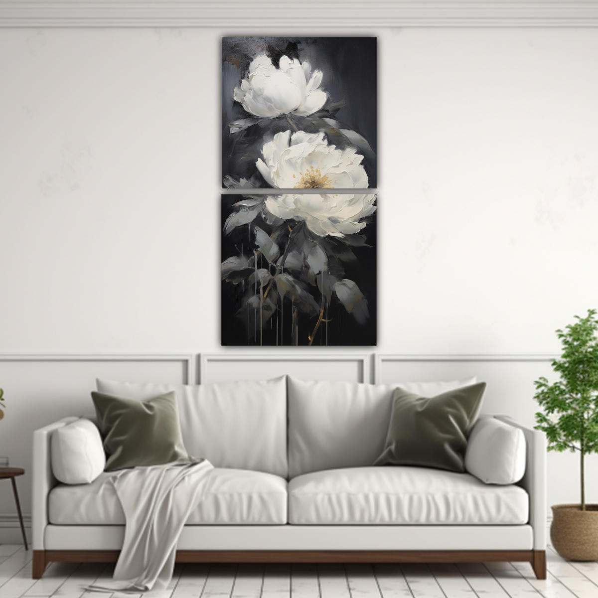 Este cuadro de diseño mural de peonías negras sobre lienzo en el estilo de pinturas decorativas es perfecto para decorar tu sala de estar o dormitorio Te recomendamos colocarlo en una pared blanca o en tonos neutros para resaltar su belleza y elegancia Combínalo con muebles y accesorios en tonos plateado, gris y dorado para crear un ambiente sofisticado y moderno ¡Agrega un toque de estilo a tu espacio con este cuadro exclusivo de DecoCuadros!
