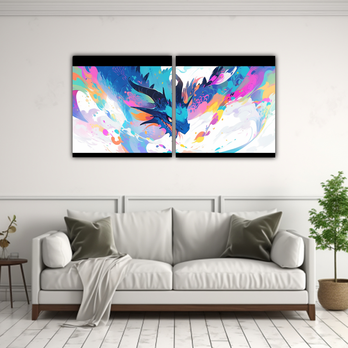Set de 2 cuadros conceptual para sala con dragón en colores neo-noir, turquesa, negro, beige y más Renueva tu decoración con la mejor calidad y diseños únicos ¡Compra ahora en DecoCuadros!