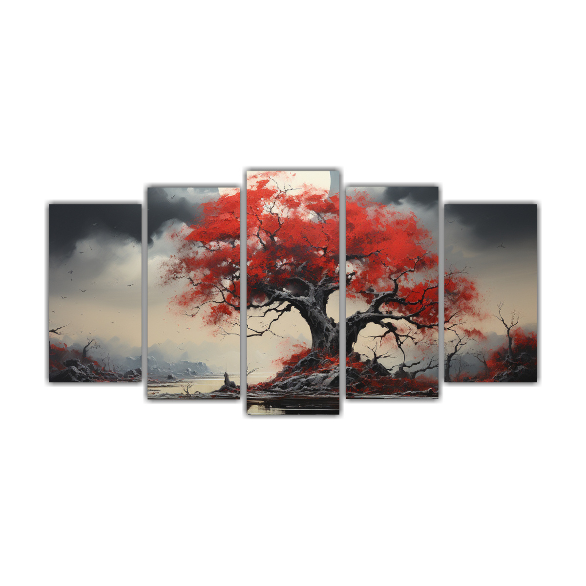 Este cuadro de expresividad árbol rojo y negro pintura abstracta agua es perfecto para decorar tu sala de estar Puedes colgarlo sobre un sofá gris para crear un contraste elegante y moderno Además, combínalo con cojines en tonos carmesí y plateado para resaltar los colores del cuadro ¡Transforma tu hogar con este diseño exclusivo de DecoCuadros!